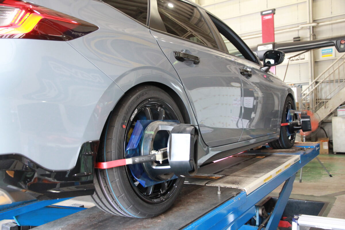 オーナー様に聞いてみると、サスペンション交換時にアライメント調整を