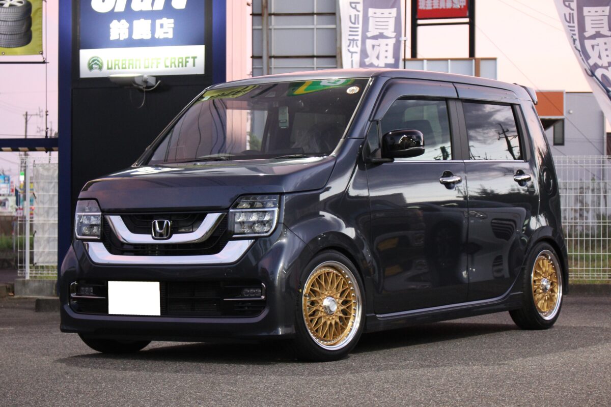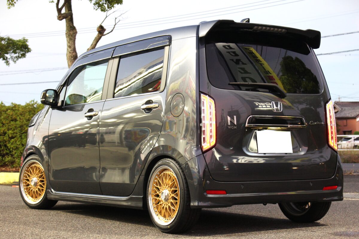 エッジの効いたボディラインのN-WGNにクラシックスタイルのシェブロンレーシングM2との相性はバッチリですね👍