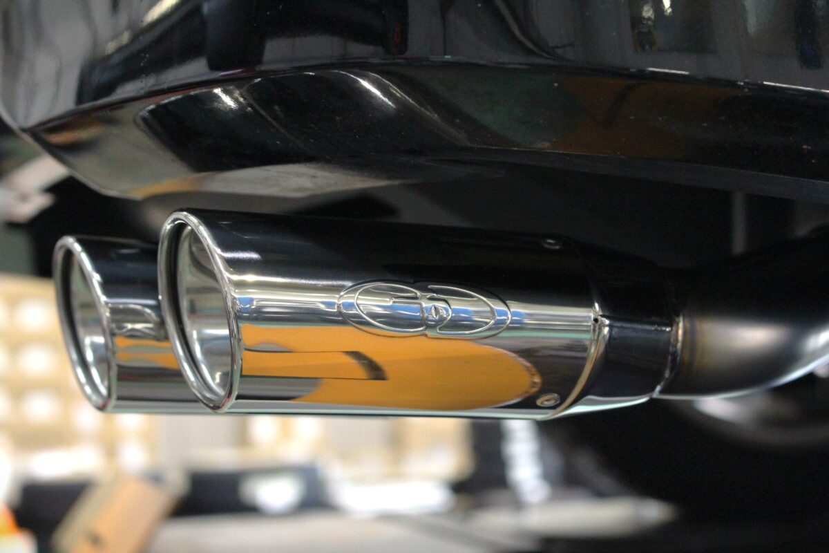 P.B.S搭載のスポーツマフラーを取り付けします。排気効率を見直すことでエンジンのパワーとレスポンスが向上。