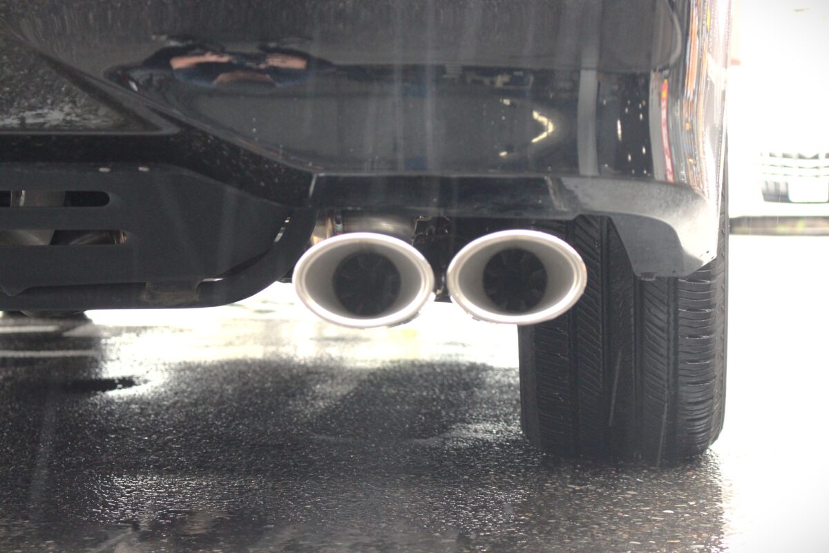 リアバンパーに隠れてしまっているのでリアビューではイマイチ迫力に欠けてしまいます。