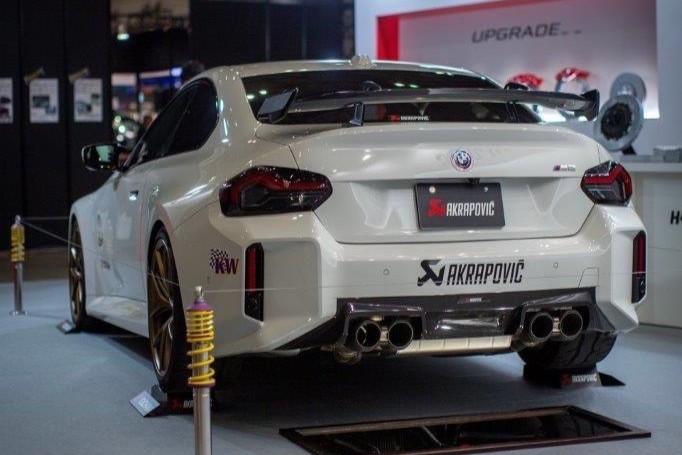 クラフト鈴鹿店に「KW&AKRAPOVIC装着のデモカーG87M2を緊急展示です!!」