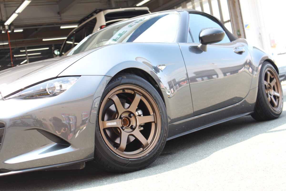 NDロードスターを初め、軽さにこだわるコンパクトスポーツユーザーに不動の人気を誇る『TE37ソニック』。今回は太めの8Jサイズで装着です。