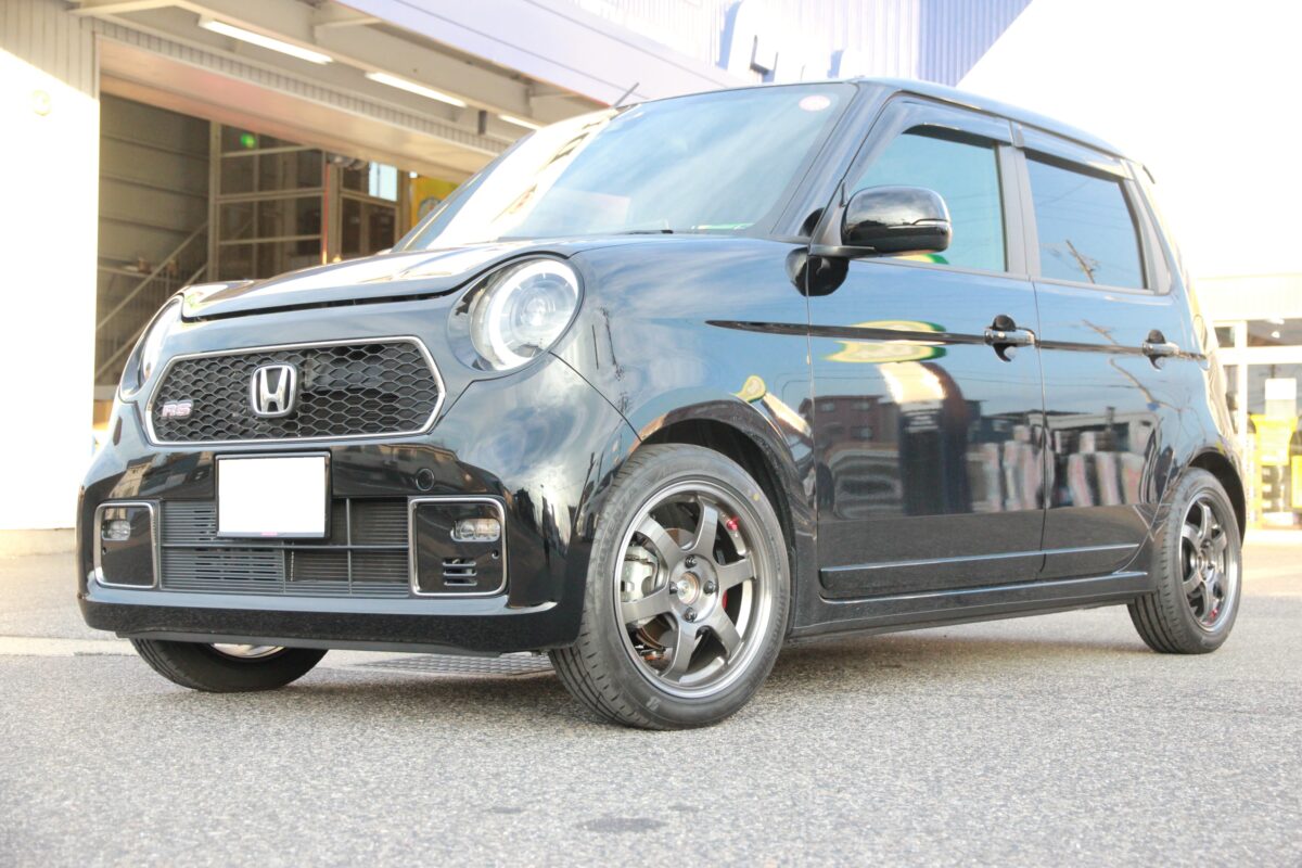 こんにちは中島です! 本日ご紹介するのはホンダ JG3 N-ONE RSのカスタムとなります(^^) 納車仕立てでフルノーマルの状態から、各パーツ取付で一気に仕上げさせていただきました♪   装着ホイールはRAYS VOLK TE37ソニック。 様々なシリーズがあるサンナナの中でも、コンパクト&K-Car向けの4穴デザインとなっております( ̄ー ̄) サイズ設定は15・16インチのみですがJ数は5~8Jまで展開されており ノーマル車高のK-Carから車高短ロードスターまで幅広い車種に取付可能なモデルです♪   カラーは王道のダイヤモンドダークガンメタ。 濃いめのガンメタ系カラーで、レーシーかつ大人な雰囲気のカラー設定。 同色のオプションセンターキャップも設定がり、ホイール全体に自然にマッチしてくれます☆   ホイールと同時に取付させていただいたのは「HKS ハイパーマックスS」 見た目はもちろんのこと、走りの性能にもしっかりと拘るオーナー様。 N-ONE RS、MT車に最適な乗り味・走り心地を体感できるようにセッティングされたモデルとなります( ̄ー ̄) 車種毎の特性に合わせて開発している拘りの車高調をお取付けとなります♪ 車高は出来る限り低めで!ということで目一杯まで車高を下げた状態に。 これでも地上高は余裕で確保できております!   走りに特化し、ホイールインチは純正と同じ15インチをキープ。 肉厚なタイヤでグリップ重視なスタイルに仕上げました(^^) N-ONEは全体的にレトロかつ走りのイメージもあるお車なので 16インチでスタイリッシュに仕上げても良いですし 今回のように15インチでレーシーに仕上げてもカッコイイですね♪   タイヤも拘りのブリヂストン ポテンザRE71RS。 サスペンション・ホイールに合わせてハイグリップなモデルをチョイスしていただきました! この辺りの銘柄はショルダー形状もガッチリしていて 15インチならではのタイヤのムチムチ感も強調されます。 見た目も走りもバッチリな組合せとなりますよ~   ちょっと見えずらいですが、同時にマフラーも交換。 SPOON N1マフラーキットを装着させていただきました! ここ最近非常にお問合せの多いマフラー。 ある程度の回転数からめちゃくちゃレーシーなサウンドになり 走るのがより楽しくなるパーツとなります♪ タイヤ・ホイール交換はもちろんマフラー交換もお任せ下さい☆   今回のカスタムスペック ホイール:RAYS VOLK TE37ソニック (F/R)6.0J-15インチ カラー:ダイヤモンドダークガンメタ タイヤ:ブリヂストン ポテンザRE71RS (F/R)165/55R15 サスペンション:HKS ハイパーマックスS マフラー:SPOON N1マフラー   ノーマル状態からのトータルカスタムも是非お任せ下さい♪ 今回も当店をご利用いただきありがとうございます(^^)