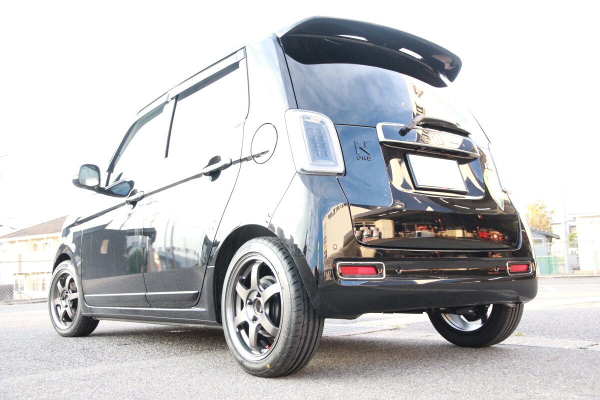 N-ONEをTEINのフレックスZでローダウン!!更にエンケイPF01の15インチとフジツボマフラーを装着しました。