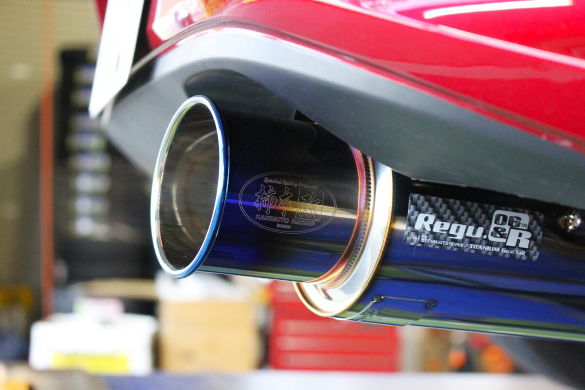 特許取得済みの特殊コーティングの仕上げがキレイなチタンフェイスが「柿本改」のロゴと合わせてテールを華やかに演出しています