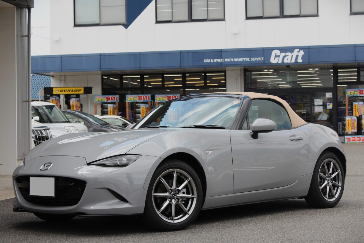 ■【MAZDA ND ROADSTAR x RAYS VOLK CE28N-plus】 マツダ NDロードスターに、進化した名作鍛造ホイール「RAYS VOLKRACING CE28N-plus」を装着し、ライトウェイトスポーツの魅力を極限まで引き出した一台が完成しました! こんにちは!クラフト中川店の加藤です。 今回ご来店いただいたのは、世界に誇る日本のライトウェイトオープンスポーツ、マツダ NDロードスターです。 「人馬一体」の軽快なハンドリングと、純正でも流麗で美しいプロポーションを持っていますが、スポーツカー好きとしては「自分好みのレーシーなルックスに仕上げたい」とウズウズしてしまう最高の素材ですよね!   「ロードスターをもっとスポーティなヴィジュアルにカスタムしたい!」そんな熱い想いを抱えるオーナー様、非常に多いですよね〜。 軽量でコンパクトな車体だからこそ、足元のバネ下重量が車の挙動や走りに直結するシビアなお車です。 だからこそ、ホイール選びは絶対に妥協できません! 今回は、伝説的な名作を現代の技術でフルモデルチェンジした超話題のホイールで、ルックスも走りも妥協しない究極のセットアップをご紹介します。 完成後の研ぎ澄まされたオーラ、必見ですよ! お客様からのリクエストは、「とにかくスポーティなヴィジュアルにカスタムしたい!」という非常にストレートで熱いものでした。 数あるスポーツホイールの中からお選びいただいたのは、日本が世界に誇るホイールメーカー「RAYS(レイズ)」の鍛造モデルです。 実はここがポイントなんですよ!ロードスターのキャラクターにこれほどマッチする選択肢もなかなかありません。 箱から出したばかりのCE28N-plus。 伝統の10本スポークデザインを継承しつつ、現代の車両基準に合わせて最新の解析技術で再設計された機能美がたまりません! お客様がこのホイールを選ばれた最大の決め手は、「鍛造で高剛性・軽量なモデルであり、あの名作CE28Nをフルモデルチェンジさせた最新作をいち早く履きたかったから」という非常にマニアックかつ熱い理由でした。 本当に車とホイールの歴史がお好きなのがヒシヒシと伝わってきます! スポークのクローズアップです。 ブロンズ(BR)カラーのザラッとした独特のアルマイト質感と、極限までシェイプアップされたシャープなラインが美しすぎます! CE28Nといえば、RAYSのボルクレーシングの中でも「最軽量」を誇った伝説のモデルです。 その「plus」として生まれ変わった本作は、昨今のハイパワー化・重量化した車両にも対応できるよう、剛性を大幅に引き上げています。 ただ軽いだけではなく、しっかりと路面のインフォメーションをドライバーに伝える「強さ」がプラスされているんですね。 あえてのセンターキャップレス仕様がスパルタン! ナットホール周辺に施された徹底的な肉抜き意匠から、1グラムでも削り落とすという本気の軽量化への執念が伝わってきますね。 ■ Wheel RAYS VOLKRACING CE28N-plus 7.5J-17inch 4H-100 ブロンズ(BR) ■ Tire BRIDGESTONE ポテンザS001 205/45R17 それでは、作業の過程とビフォーアフターの変化を見ていきましょう。まずはカスタム前のサイドビューから振り返ります。 純正ホイール装着時のサイドビューです。 ダークトーンの純正ホイールも上品でまとまっていますが、もう少しスポーツテイストと軽快感を取り入れたいところですよね。 今回チョイスしたサイズは「7.5J-17inch」という、NDロードスターにとって非常に綺麗に収まるドンピシャの王道スペックです。 極端なローダウン等の大掛かりな足回り加工をせずとも、純正の持ち味を活かしながら確実なスタイルアップが狙えます。 もちろん、車検などの保安基準を遵守した上で、安心してドライブを楽しめるセッティングが基本です。 CE28N-plus装着後のサイドビューがこちら! ブロンズカラーが足元の存在感をグッと引き上げ、一気に本格派スポーツカーのオーラへと変貌を遂げましたね! 続いて、出ヅラの変化も見てみましょう。 ロードスターはフェンダーのアーチがとても美しいので、ホイールの収まり具合で全体の印象が大きく変わります。 作業時は、高価な軽量鍛造ホイールに傷をつけないよう細心の注意を払いつつ、硬めのポテンザS001を確実に組み込みました。 純正状態のフロントビューです。 フェンダー内側に少し余裕があり、少しおとなしい印象を受けますね。 ここからどう変わるのかワクワクします! タイヤの抜き替え作業はタイヤのビード部分に負担がかかる場合もあるため、プロの確かな技術と専用の機材が不可欠です。 車体に装着する際も、トルクレンチを使った正確な規定トルクでの締め付けを徹底しています。 スポーツ走行も視野に入るお車だからこそ、こうした基本作業の積み重ねが命運を分けるんです。 装着後のフロントビューです!7.5Jのリム幅と絶妙なインセットの恩恵で、フェンダーラインに美しく沿ったスポーティな出ヅラが完成しました。 いよいよ全ての作業が完了しました。後ろ姿の迫力もたまりませんよ! リア