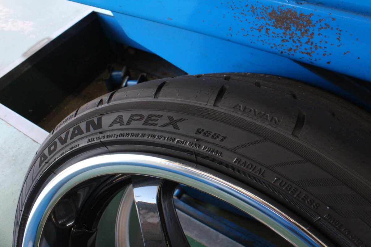 タイヤはレーシーなトレッドパターンのヨコハマ『ADVAN APEX V601』をセット。