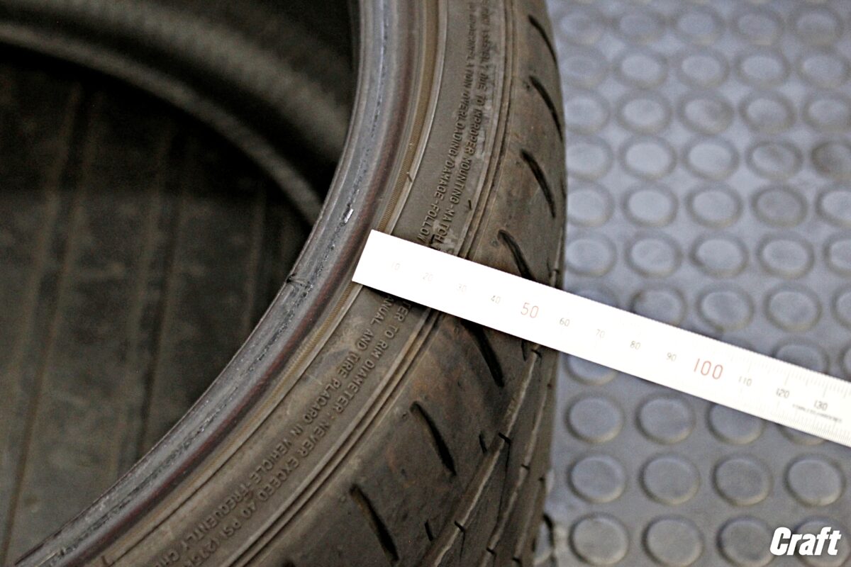 ホイールに収まる部分を除くと実際のタイヤの厚みは50mmもないんですよね。汗