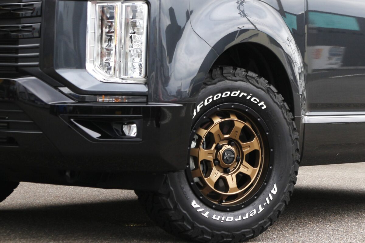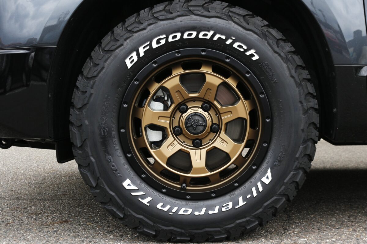 オフカスタムかつホワイトレターがいいとなったら最初に出てくるといっても過言ではないのがグッドリッチ。今回は、A/Tタイヤの中でも静穏性と乗り心地の良さがトップクラスなKO3を選択されました👍