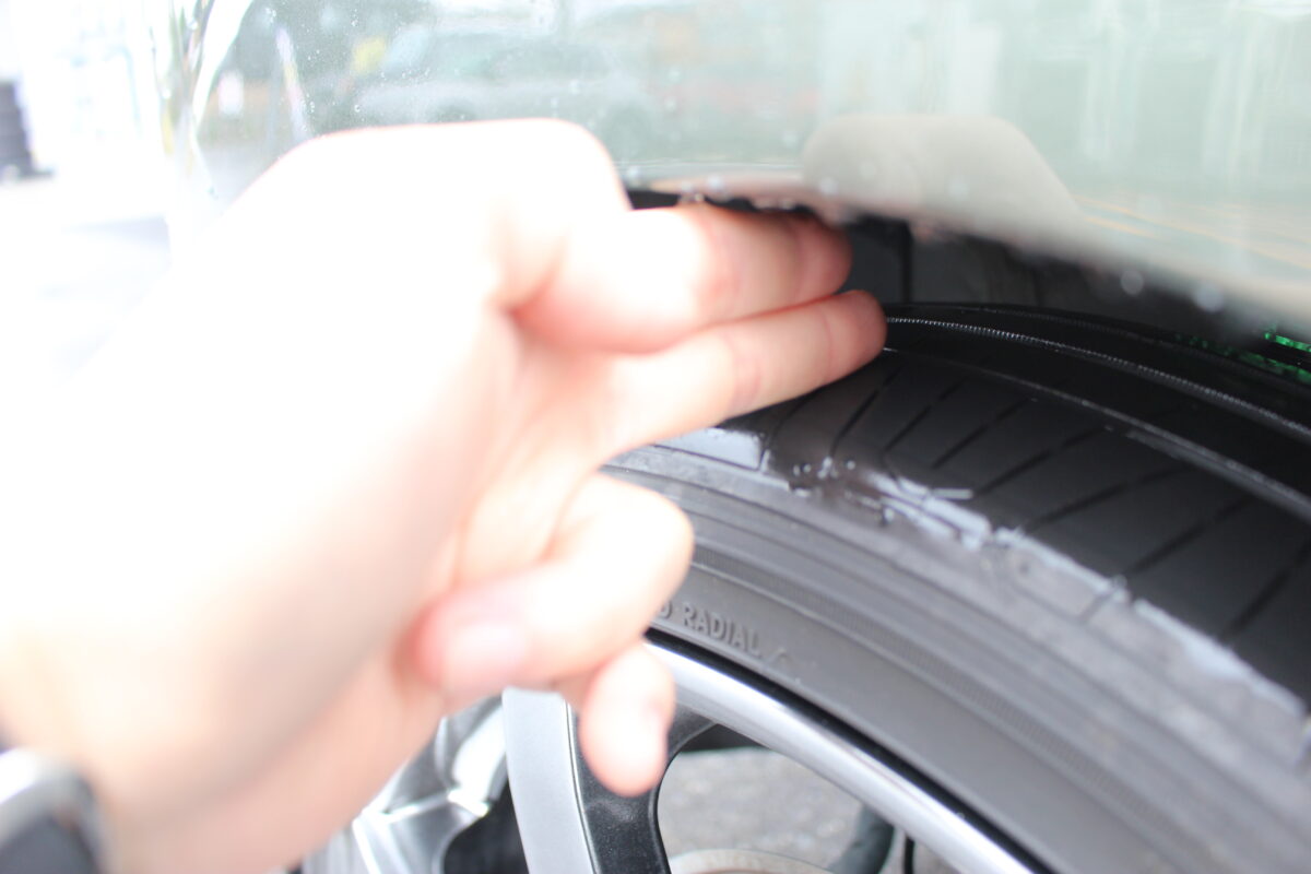 純正車高のフェンダークリアランスは私の指で約5本分。
