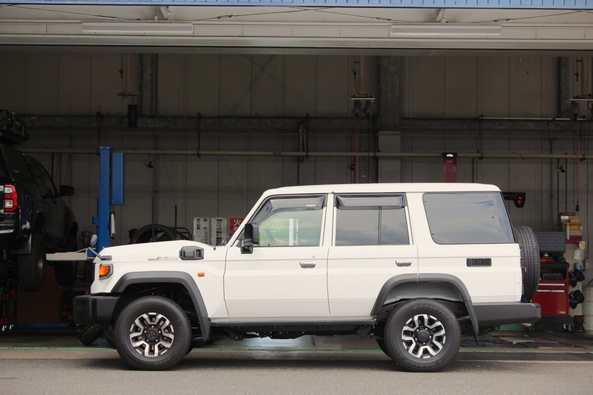 再再販ランドクルーザー70(GDJ76)は車体がやや前下がりの前傾姿勢になっており、それを解消するためのご相談を多くいただきます。