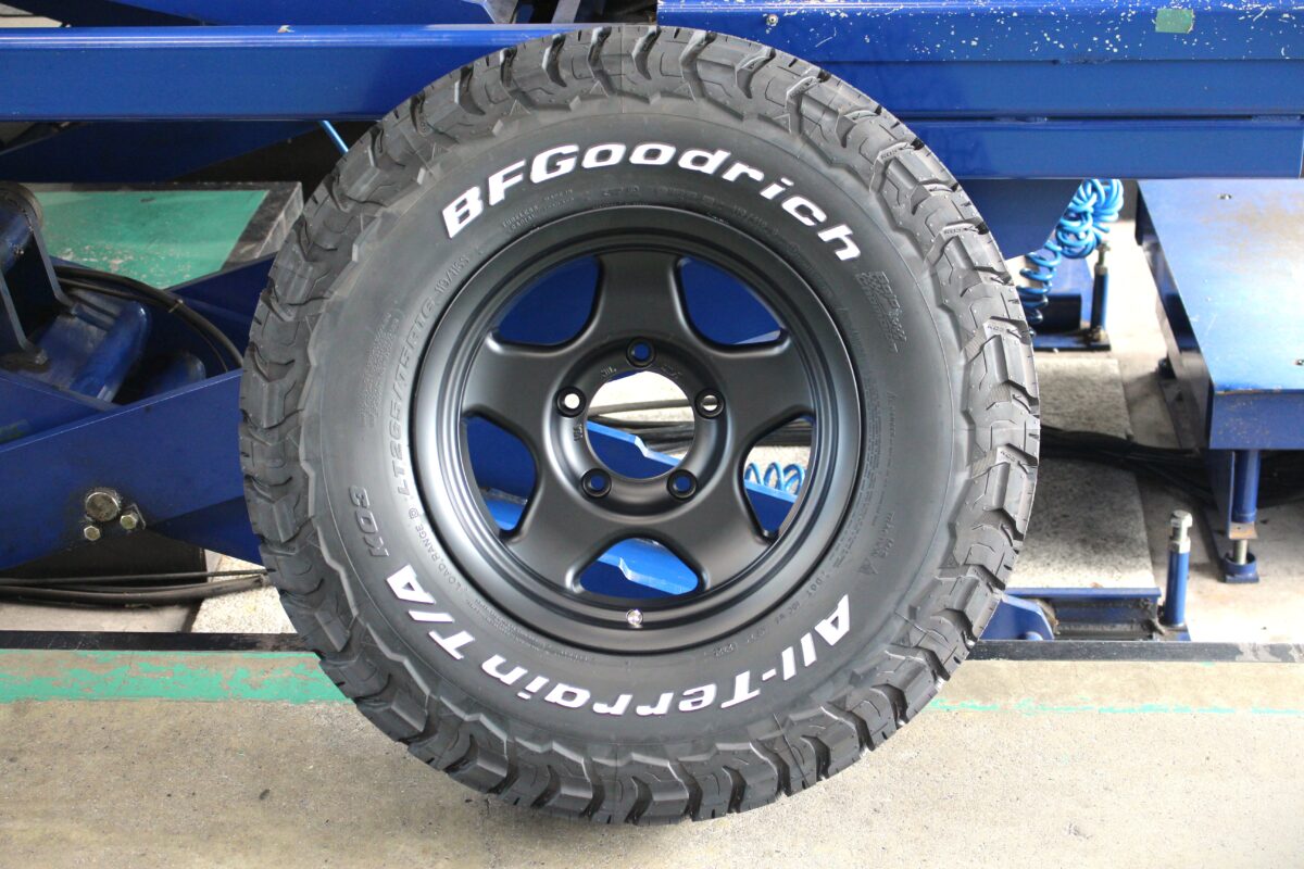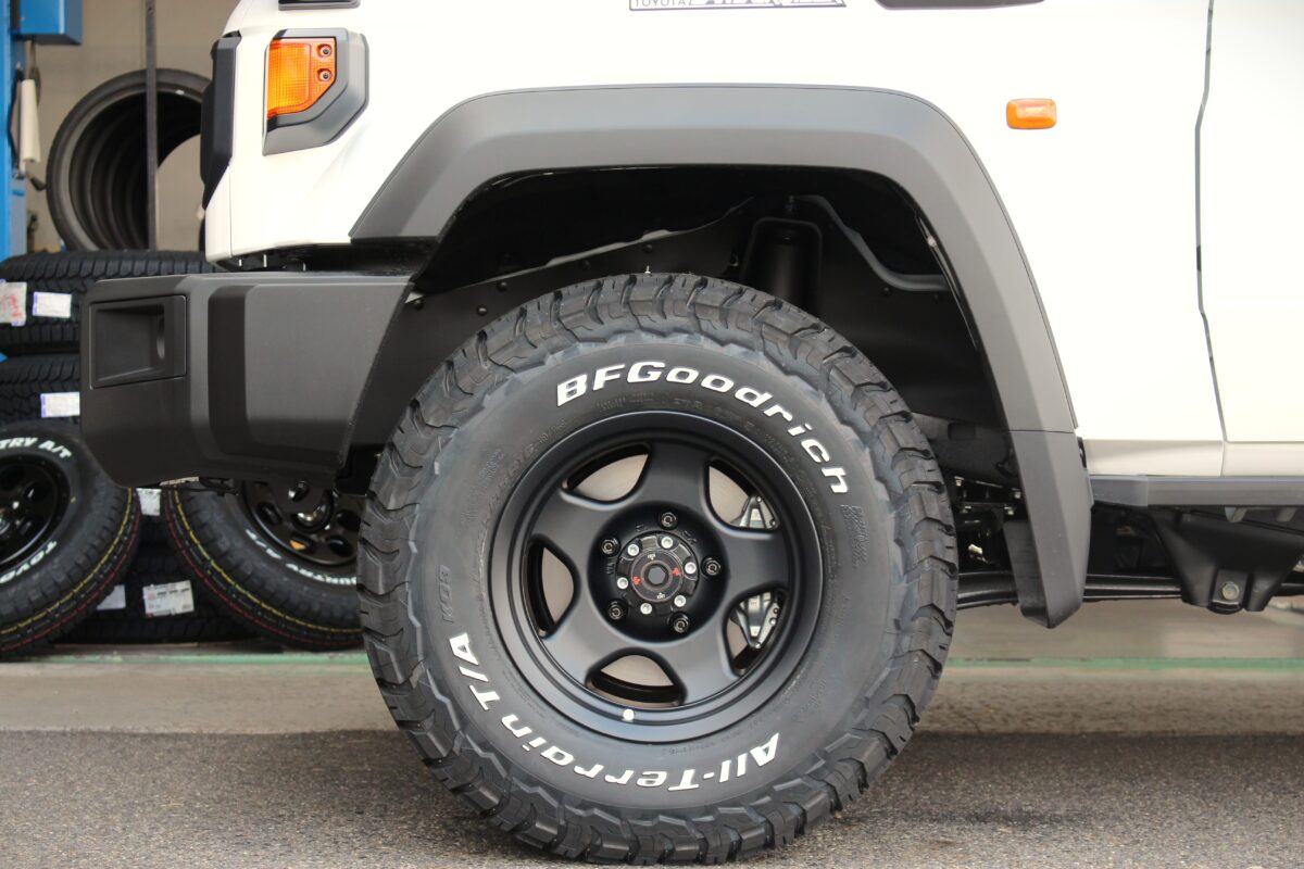 オフロードな見た目ながらもオンロード性能も兼ね備えたAT(オールテレーン)タイヤ。その中でも見た目のアグレッシブさや車内の静粛性などで人気のBFグッドリッチ T/A KO3を組み合わせます。
