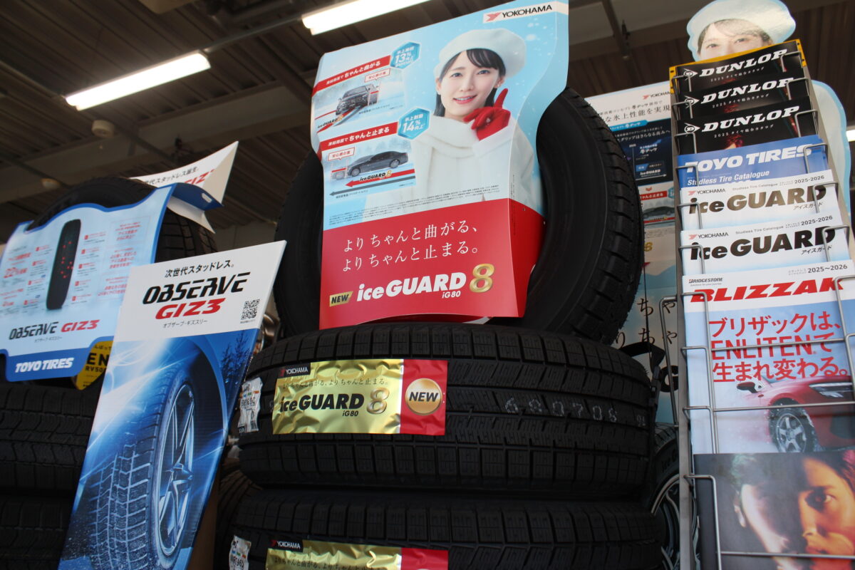 ヨコハマタイヤの新作スタッドレス『アイスガード8 iG80』も展示しております。