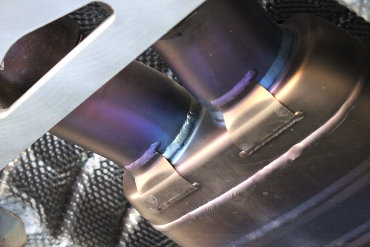 3リッターターボエンジンの高温になる排熱でしっかりとチタン特有の焼き色が付いています!