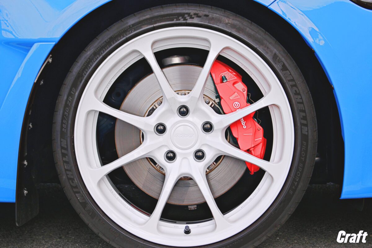 純正ブレンボキャリパーとのコントラストがキマったホワイトカラーのホイールです。