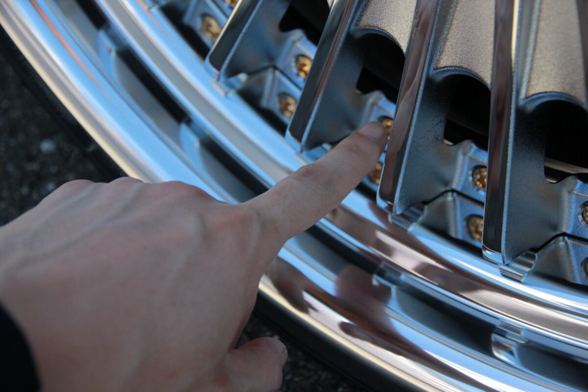 タイヤホイールを取り外し、どのディスクタイプが装着可能なのかを確認。