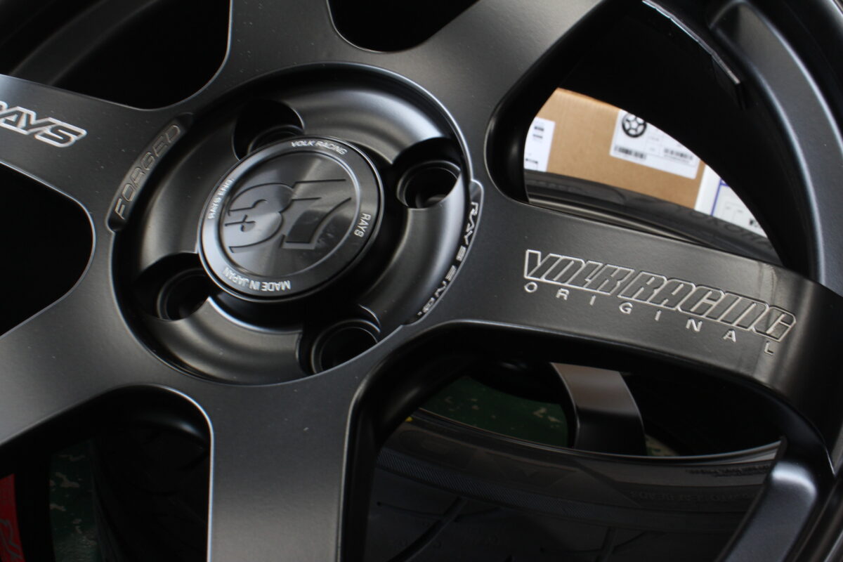 センターキャップはフロントは37ロゴ、リヤはRAYSシルバーロゴのデュアル仕様で装着です。