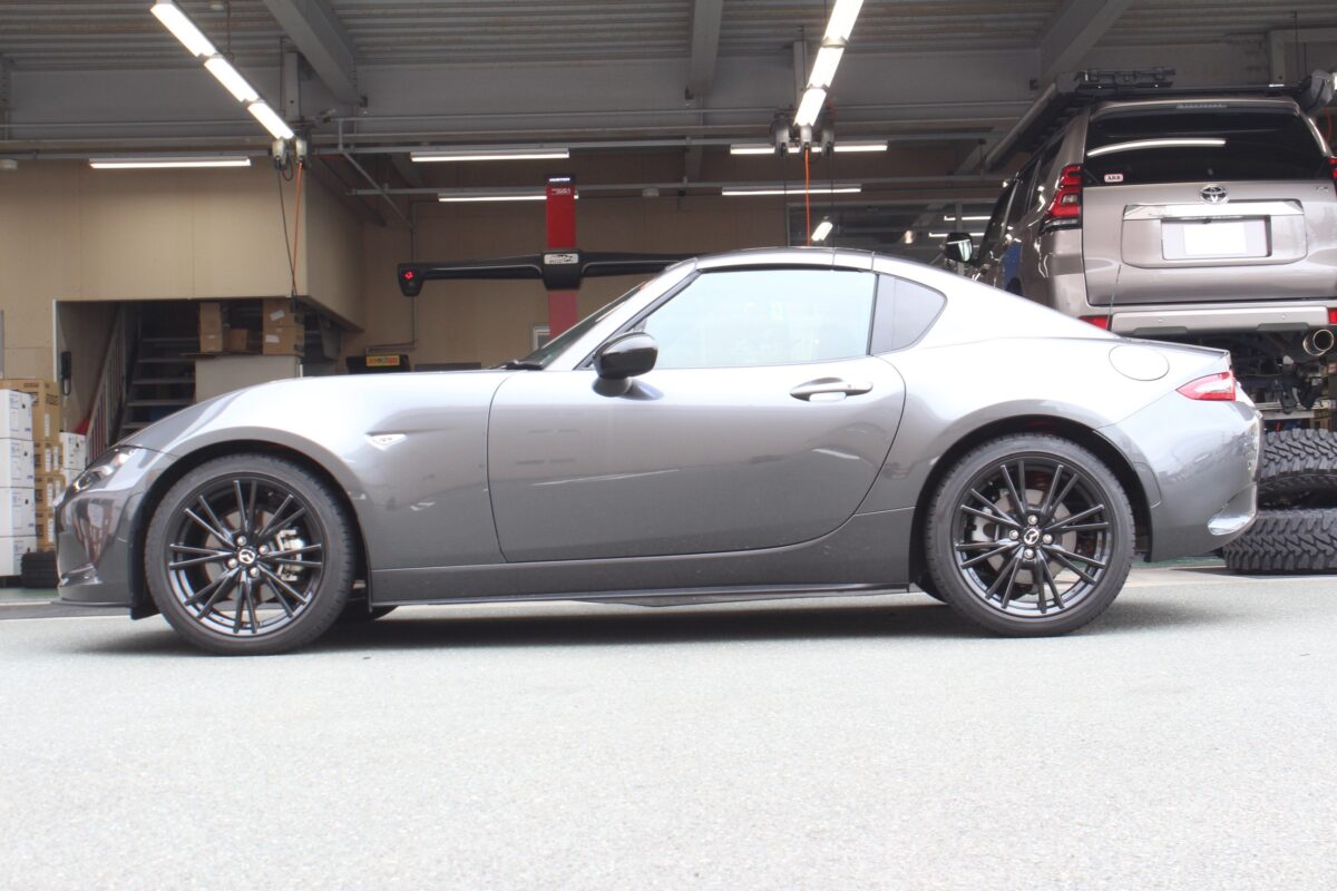 オートエグゼのダウンサスで程よくローダウンされ大人の雰囲気が漂うRFに新作ホイール装着していきます(^^)/