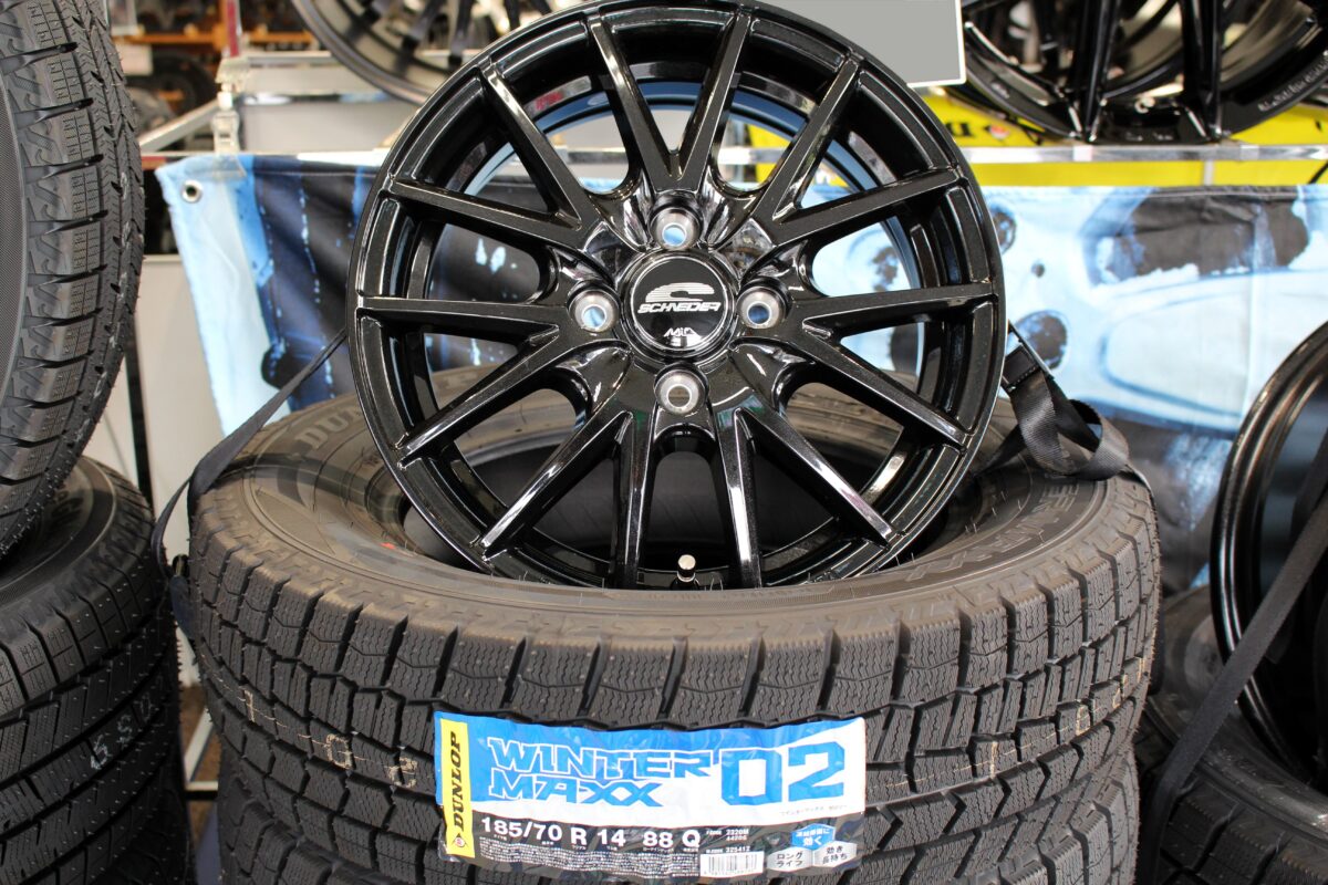 タイヤも「ダンロップ WM02」を在庫しておりノート等コンパクトカー向けのセットでございます。