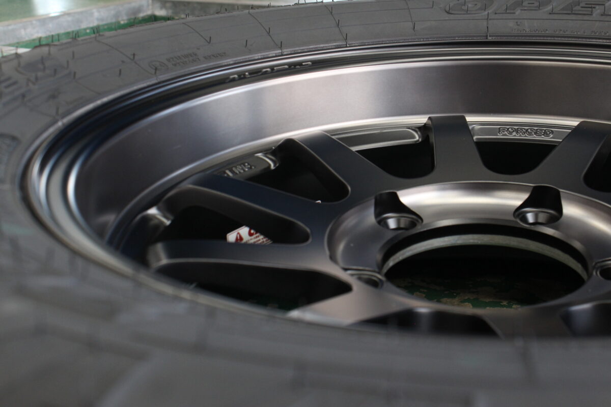 本日は鍛造ホイールとアップサイズタイヤの組み合わせで装着していきます!!