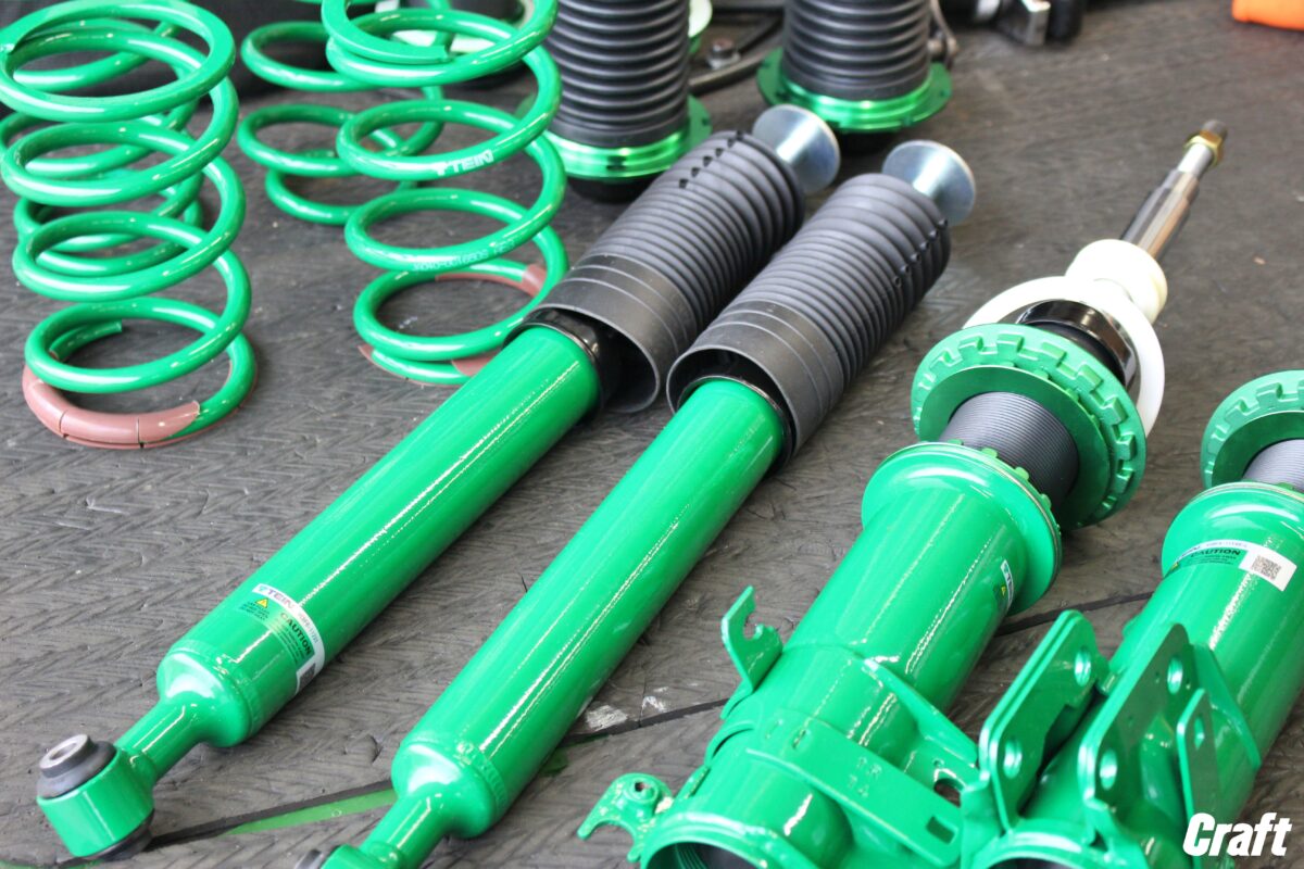 今回取り付けていくTEINの車高調は「全長調整式」・「複筒式」の車高調となります。
