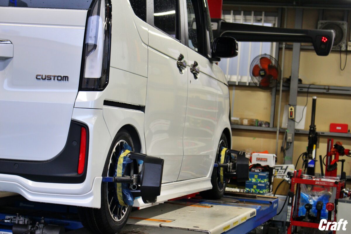 N-BOXカスタムJF5をローダウンカスタム!BLITZ ZZ-R車高調を取付&3Dアライメント調整!