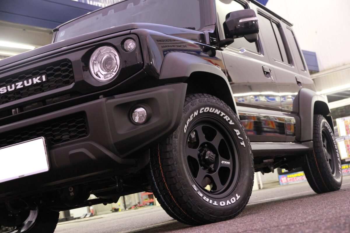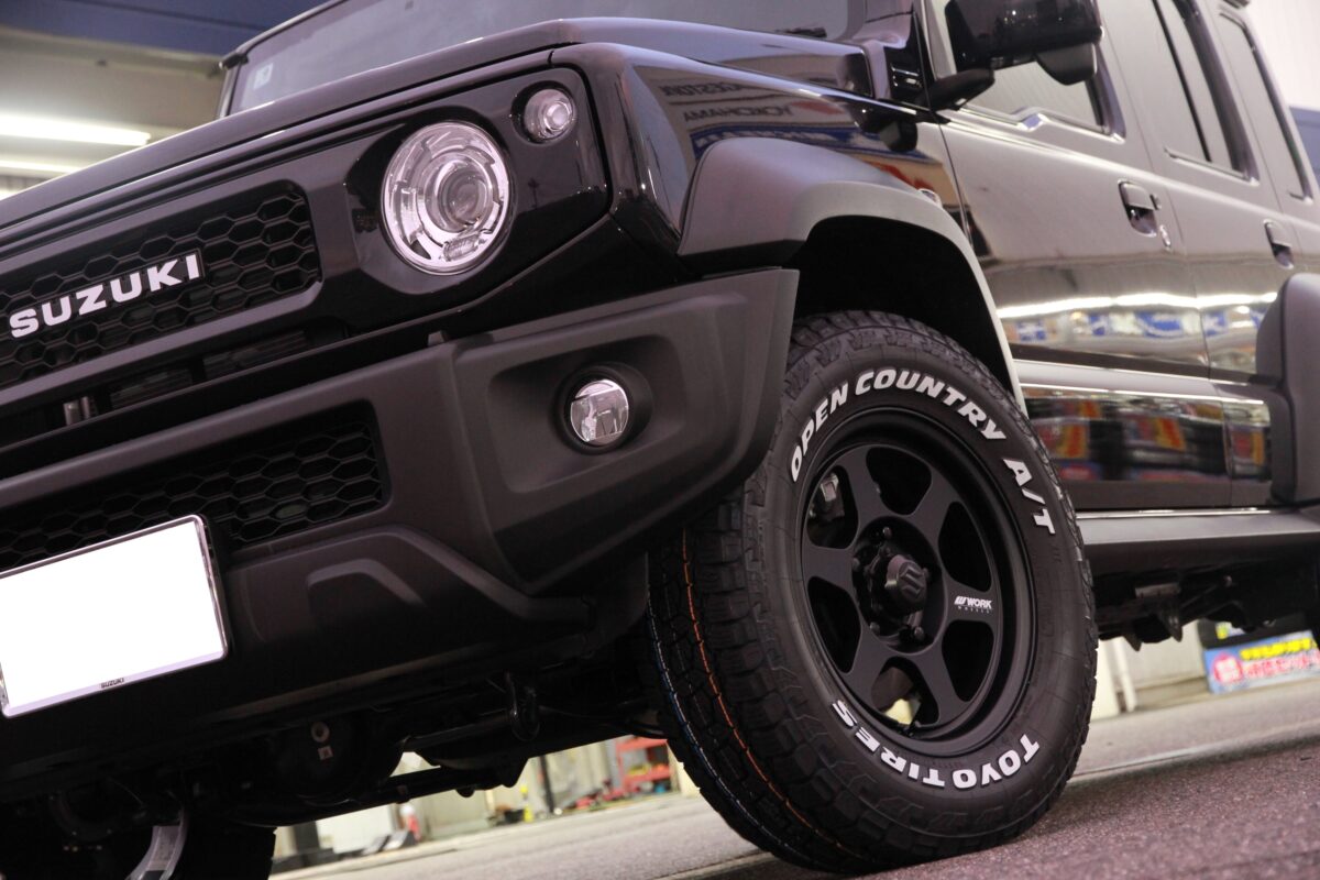 舞浜にある夢の国を横目に神奈川までドライブ。。。 そして完成したのがオフ仕様の相棒ですっ✨     いつもありがとうございます、クラフト厚木店・佐藤です!!   本日のご紹介は、遠方よりご来店いただいた、心温まるカスタム事例となります。   なんと今回 千葉県船橋市  から、2県を越えて神奈川の当店までお越しいただきました!!   ワタクシ佐藤も千葉県には良く出掛けますが、船橋から当店までの道のりはなかなかの距離。 きっと道中、左手に広がる 「 東京ディズニーリゾート 」 の華やかな景色を横目に ” 愛車の変身を楽しみに ” ワクワクしながらハンドルを握ってくださった事でしょう。   数あるショップの中から、あえて県を跨いで当店を選んでいただけたこと。 その期待に全力でお応えすべく、オーナー様と一緒に悩み抜き、最高の足元を創り上げた記録です。   ■ 「 自分だけの1台 」 を求めて。。。ホイール選びのドラマがスタート     オーナー様は、愛車ジムニー(JB64W)をより自分らしく、そしてもっと 「 ジムニーらしく 」 したいという熱い想いをお持ちでした。 店頭に並ぶ各メーカーのサンプルホイールを前に、オーナー様の目が輝きますっ✨   まずは 「 スポークデザイン 」 をベースに候補を絞る。 そして、最終候補に残ったのは、以下の2銘柄。   ■ RAYS グラムライツ 57DR-X オフロード界の王道。スポーティーで力強い6本スポークが魅力。 ■ WORK MEISTER(マイスター) L1 1P SUV スポーツホイールのDNAを受け継ぎつつ、SUV向けにブラッシュアップされた硬派な逸品。   どちらもジムニーにはお似合いの一品。 そして決め手となったのはホイールカラー。   ■ 「 WORK MEISTER 」 と言う運命の選択     最終的にオーナー様が選ばれたのは 「 WORK MEISTER L1 1P SUV 」 でした!   決め手となったのは、オーナー様が理想としていたホイールカラー(マットブラック)である事。     ■ 「 ラギットテレーン&ホワイトレター 」 で完成する究極のシルエット     この最高のホイールに組み合わせたタイヤは、今やジムニー乗りのスタンダードとも言える 「 TOYO OPEN COUNTRY R/T(オープンカントリー・アールティー)」 です!!   マッドテレーン(M/T)の迫力あるルックスと、オールテレーン(A/T)のオンロード性能を兼ね備えた 「 ハイブリッド 」 なタイヤ。   この 「 ラギットテレーン 」 特有のゴツゴツとしたパターンが、WORKマイスターのマットブラックと組み合わさることで、ジムニーらしさをより引き立たせます。   ■ ワタクシ佐藤こだわりの 「 隠し味 」     そして、ここからが 「 佐藤流 」 のこだわりです。   ジムニーのリアホイールは、構造上センター部分が寂しくなりがち。   そこで、ワタクシ佐藤がオススメさせていただいたのが 「 センターキャップの追加装着 」 です。   センターキャップと言うほんの小さなパーツですが、ジムニーに限ってはその選び方が難しかったりするんですよね。   その理由はフロントの特赦な形状にあります。ジムニーはパートタイム4WD車。その構造からフロントハブ部にはエアロッキングハブと言う構造物があり、この形状にマッチするセンターキャップがなかなかないんですよね。。。汗   ※画像左がフロント。右がリア。   ですが、本日はそんなエアロッキングハブに合わせて作られた拘りのセンターキャップを装着!!   前後の画像を見比べても違和感ありませんよね!?   このキャップがあるかないかで、見た目のバランスが大きく変わります。 「 細かいところまで抜かりなく 」 オーナー様のジムニーライフがより輝くよう、細部までトータルコーディネートさせていただきました。     ■ 千葉県までの帰り道も、きっとワクワクが止まらない。。。     ご入庫時のジムニーから大きく進化を遂げたオフ感漂う愛車にオーナー様もご満悦な様子。   武骨な足元に仕上がりながらも、マットブラックの質感が大人の落ち着きを演出。 まさに 「 可愛いジムニー 」 から 「 格好いい相棒 」 へと進化した瞬間です。   カッコ良く仕上がった愛車を見て 「 遠くまで来た甲斐がありました 」 っとおっしゃっているかのような素敵な笑顔をいただきました!!     ■ 最後に。。。     千葉県船橋市から、湾岸エリアの渋滞を抜け、当店までお越しいただいたオーナー様、本当にありがとうございました。   東京ディズニーリゾートの魅力にも負けない?? クラフト厚木店でのホイール選び、お楽しみいただけましたでしょうか??笑   帰りの湾岸道路、サイドミラーに映る新しいタイヤの質感を楽しみながらのドライブはいかがでしたでしょうか 👀   これから始まる千葉でのジムニーライフが、最高に楽しいものになることを願っています。     2026年2月21日(土)から始まる 「 2026 春のクラフトカスタムフェア 」 では、今回ご紹介したWORKやRAYSをはじめ、数多くのホイールを展示します。   舞浜の夢の国にも負けない!? ワクワクするようなホイール選びを、ワタクシ佐藤