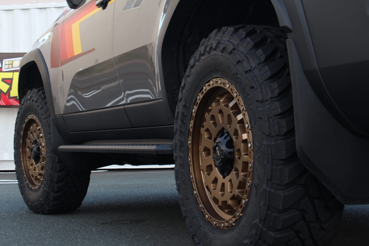 リフトアップに伴いタイヤ外径を大径化した今回のカスタマイズ特にタイヤの外形アップは二回り大きくなる“275/70R18”