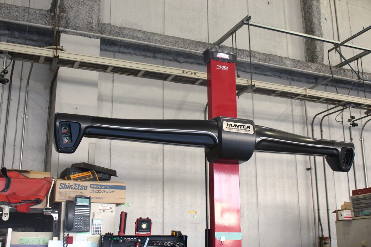 ローダウンによる各部の数値のズレを補正し、最後は試走によりハンドルセンターを確認。