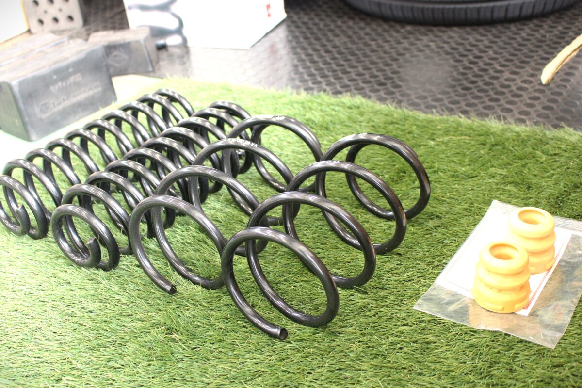 お選びいただいたダウンサスはみなさんご存じRS-RのTi2000ダウンチタン配合のスプリングでヘタリに強く、乗り心地も純正とあまり変わらないので人気のサスペンションです。