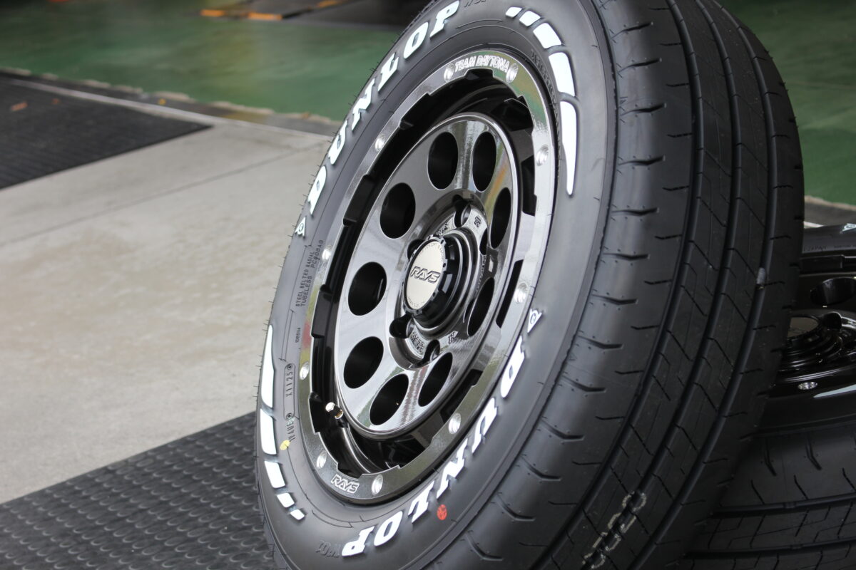 ハイエースをオフロードカスタム。レイズ チームデイトナ D9 スペックMとホワイトレタータイヤ ダンロップ W01を装着