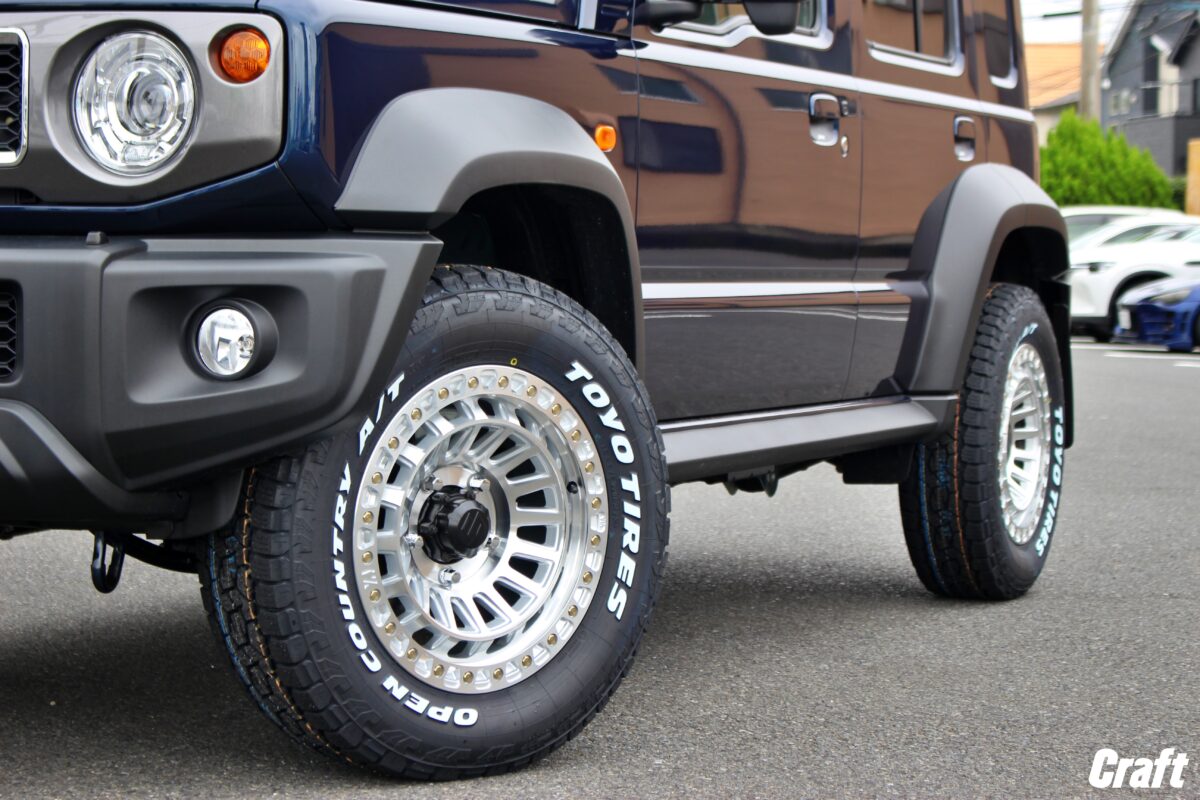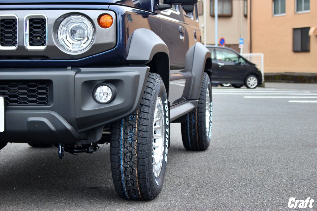 225/70-16などの太いサイズを装着したいとご相談いただくこともありますが、今回のホイールのようなサイズの組み合わせだと、追加でフェンダーを付けることをおすすめします。