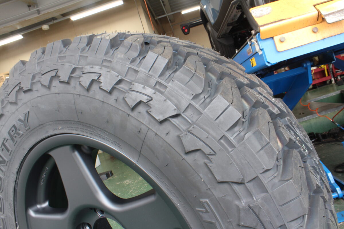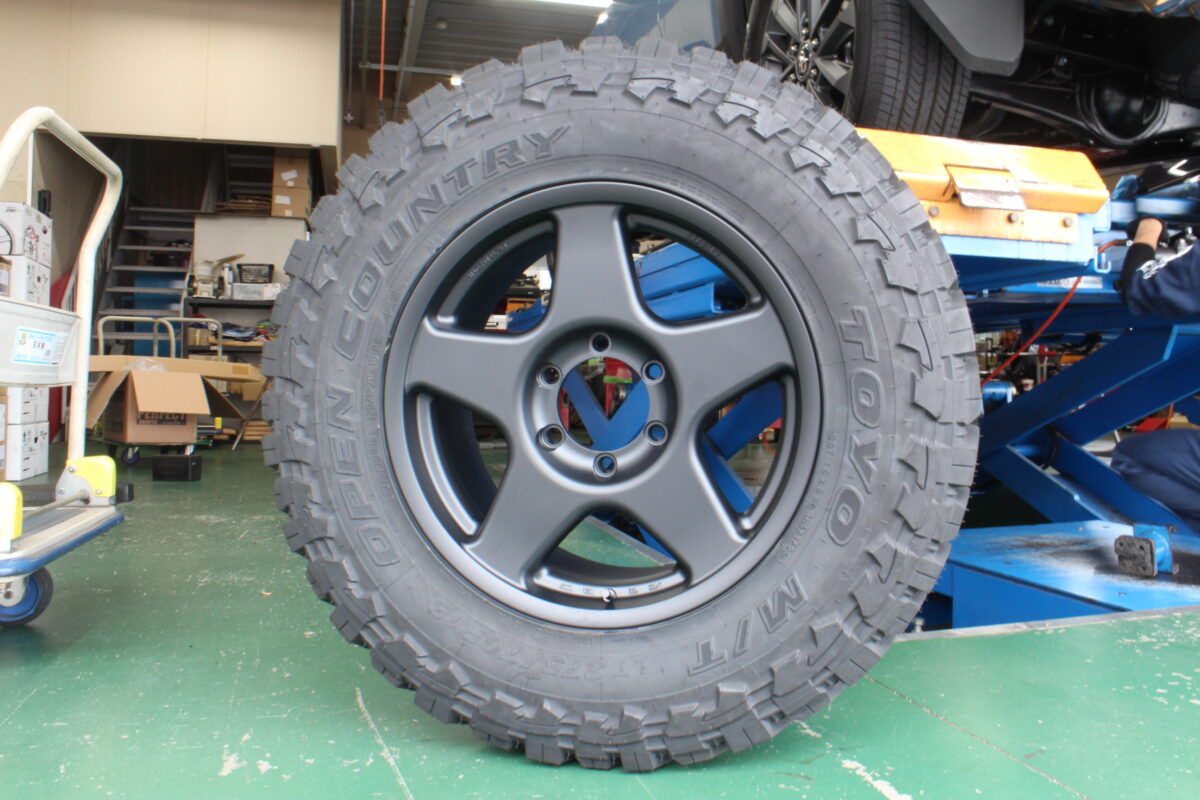タイヤはトーヨーのマッドテレーン『オープンカントリーMT』をセット。サイズは定番カスタムサイズの『275/70R18』です。