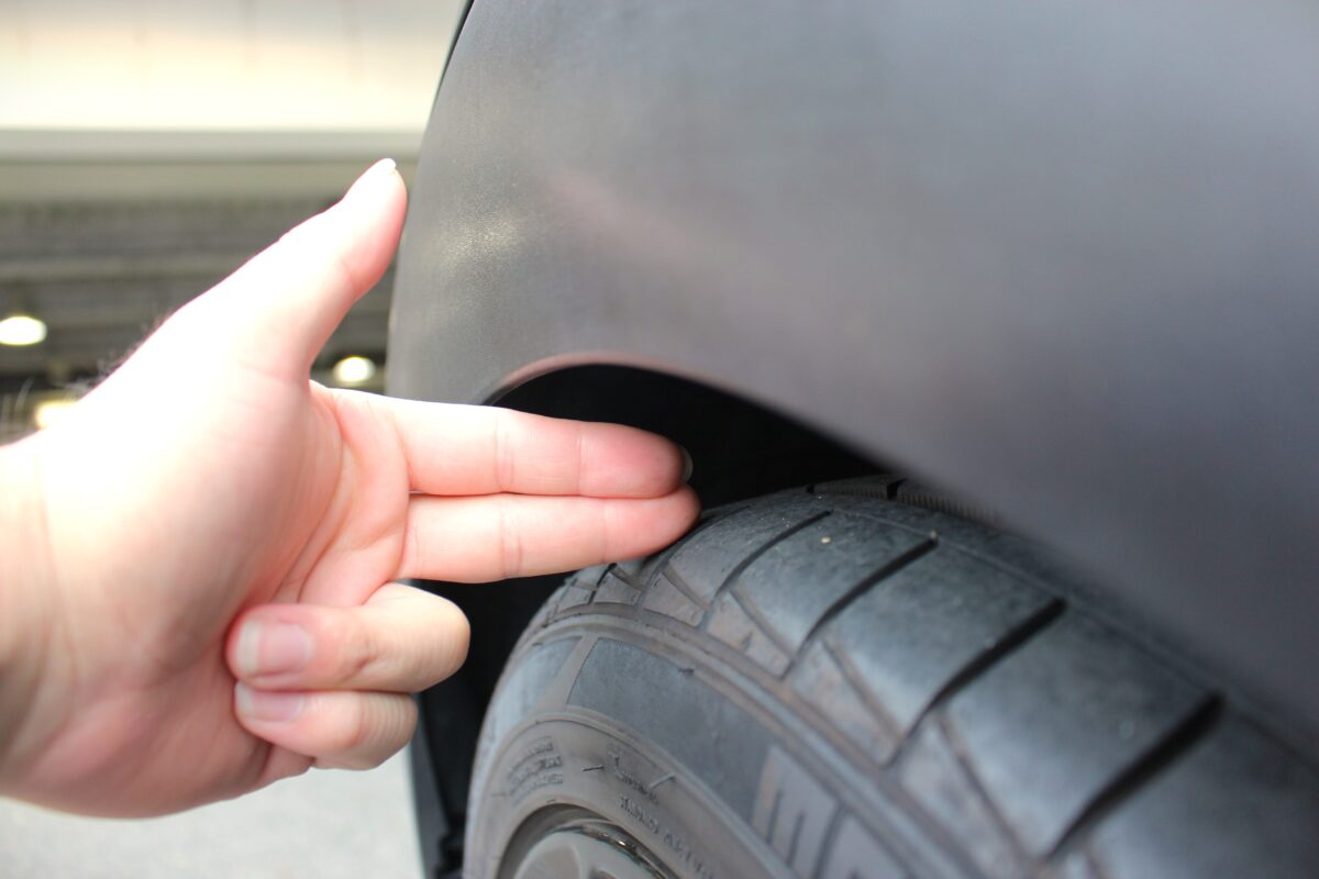 そしてこちらがダウンサス取付後のフェンダークリアランスです。