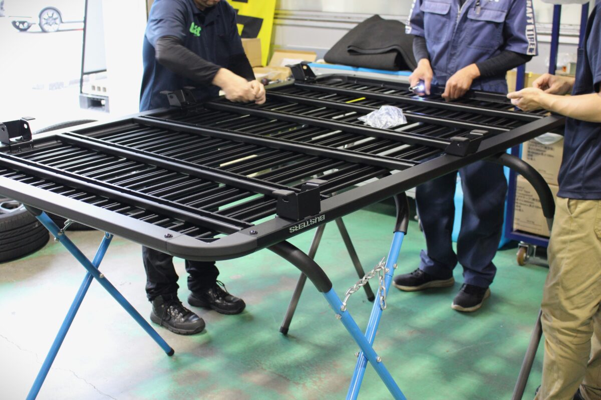 その日の内に装着するために購入が決まった段階ですぐさまルーフラックを組み立てていきます。