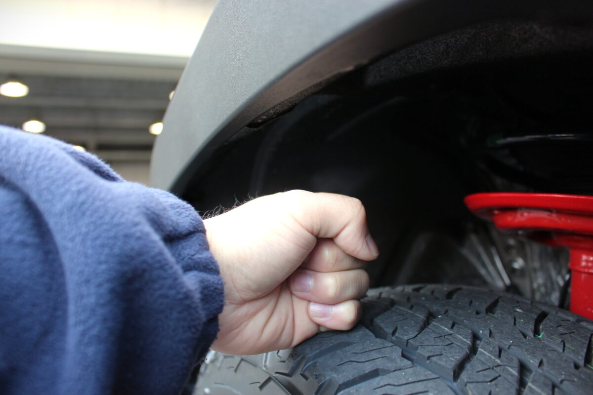 そしてこちらがリフトアップ後のフェンダークリアランス。