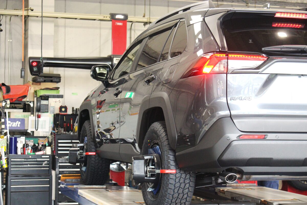 作業の仕上げに3Dアライメント調整を行い、リフトアップに伴いズレてしまった各部の数値を整えます。