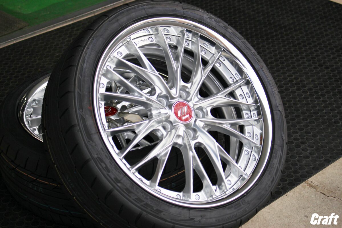 なので、いろいろとオーナー様の意見を聞いてホイールサイズを作るのですが、「攻めたホイールサイズしかない」もしくは「ツライチとは程遠いサイズしかない」などホイールによっては制限がかかってしまう場合があったりもします。