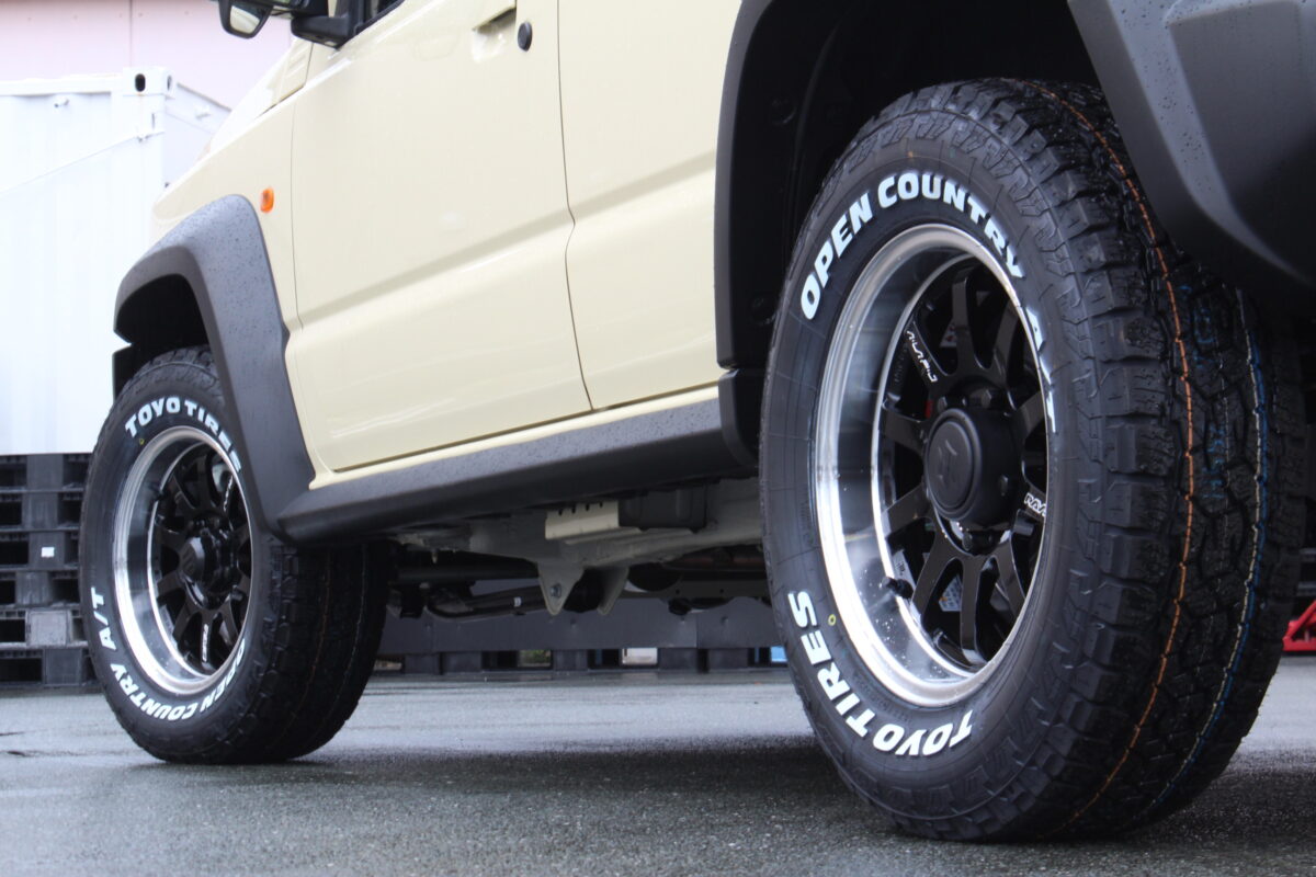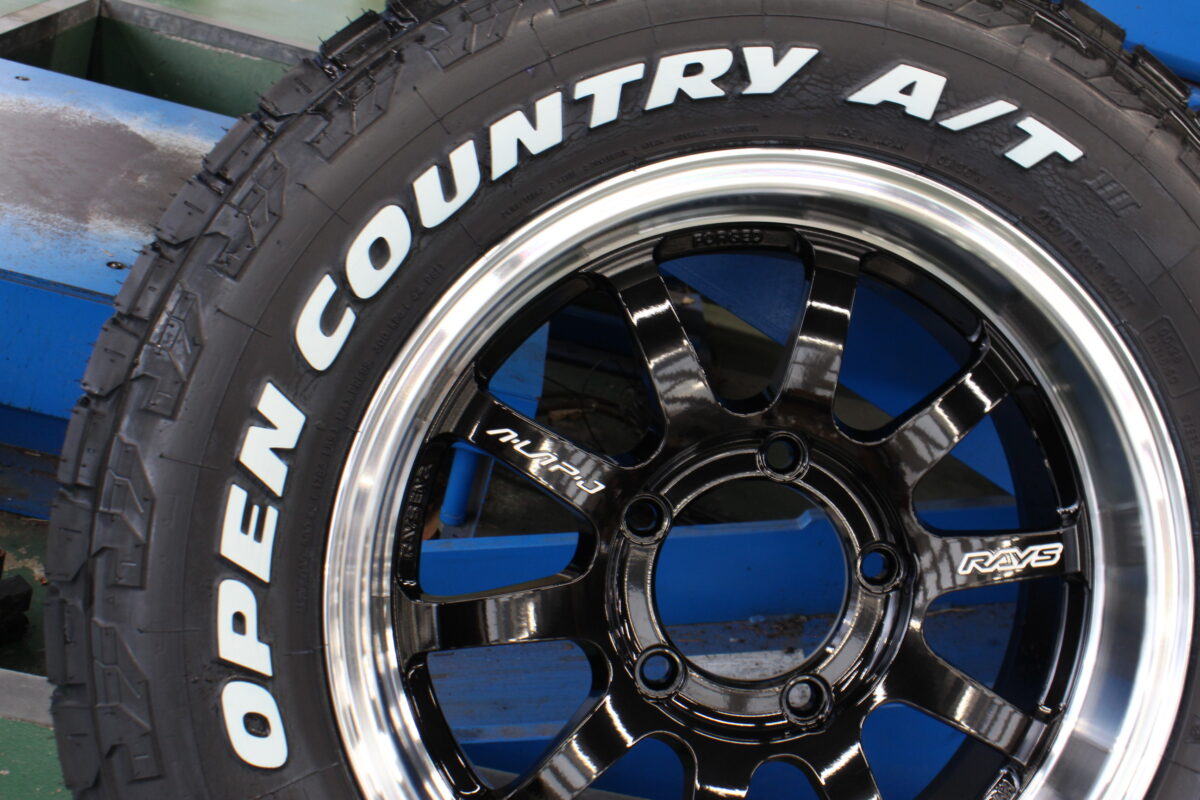 組み合わせるタイヤはトーヨーのオールテレーンタイプの“ATⅢ”M+Sに加えて“スノーフレーク”が入って冬での使用も考慮可能