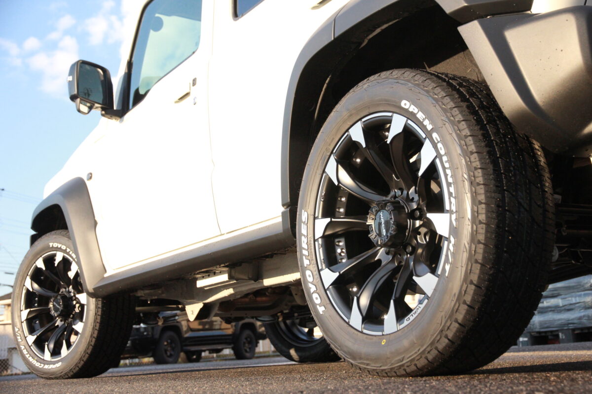 【ジムニーカスタム】オフ系タイヤと軽量ホイールの組み合わせ!オプカンとENKEIでかっこよく!
