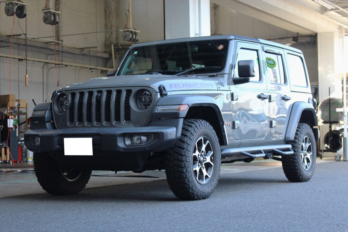 今回はラングラーオーナーからご用命が多いリフトアップ、タイヤ交換を同時に施工