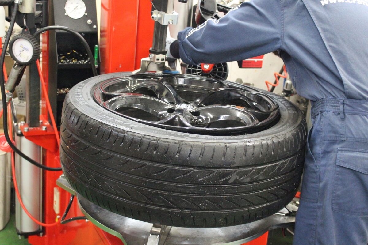 ホイールに傷を付けないように、慎重に古いタイヤは外して、新しいタイヤを組んでいきましょう。