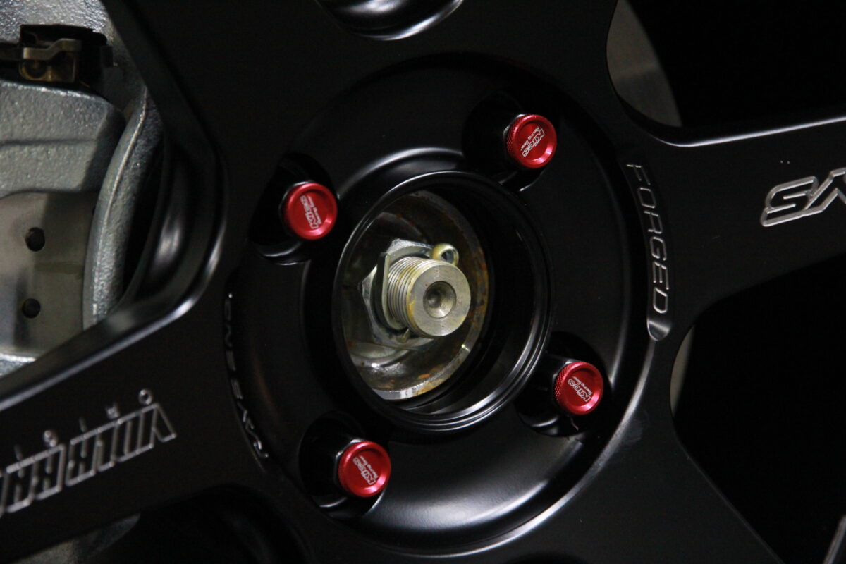 ホイールカラーをブラック、ホイールのアルミキャップを赤にする事で