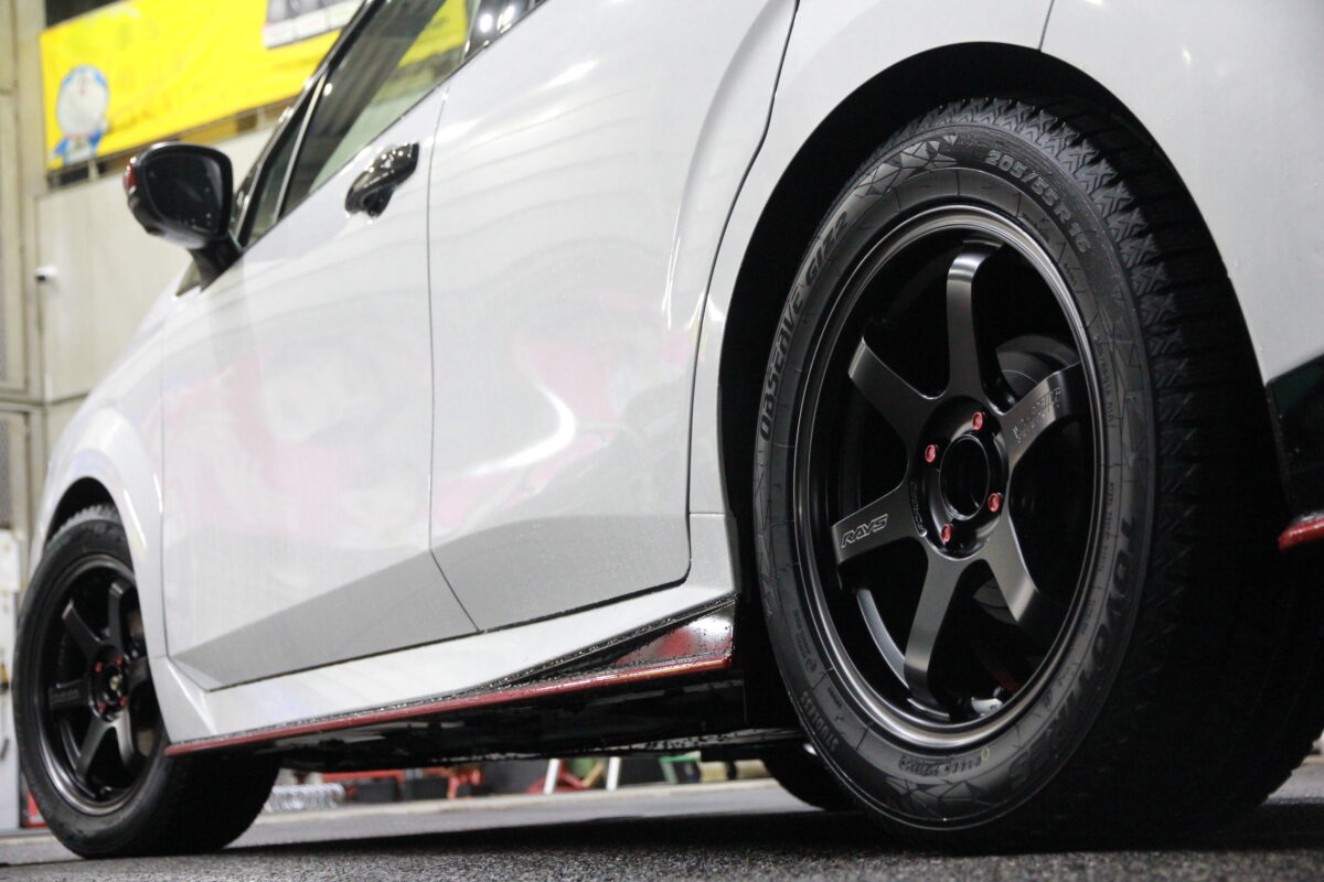 純正ホイールよりも外に出ヅラを攻めた冬仕様。