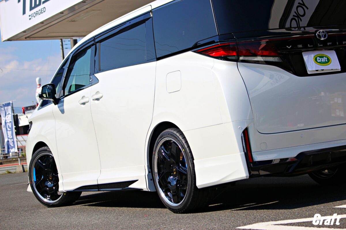 40アルファード・ヴェルファイアはローダウンを行うとキャンバー角に変化が生まれる車輛ですが、この出ヅラに仕上がっていれば今後ローダウンを行ったとしてもそのまま装着する事も出来ますよねっ 👍