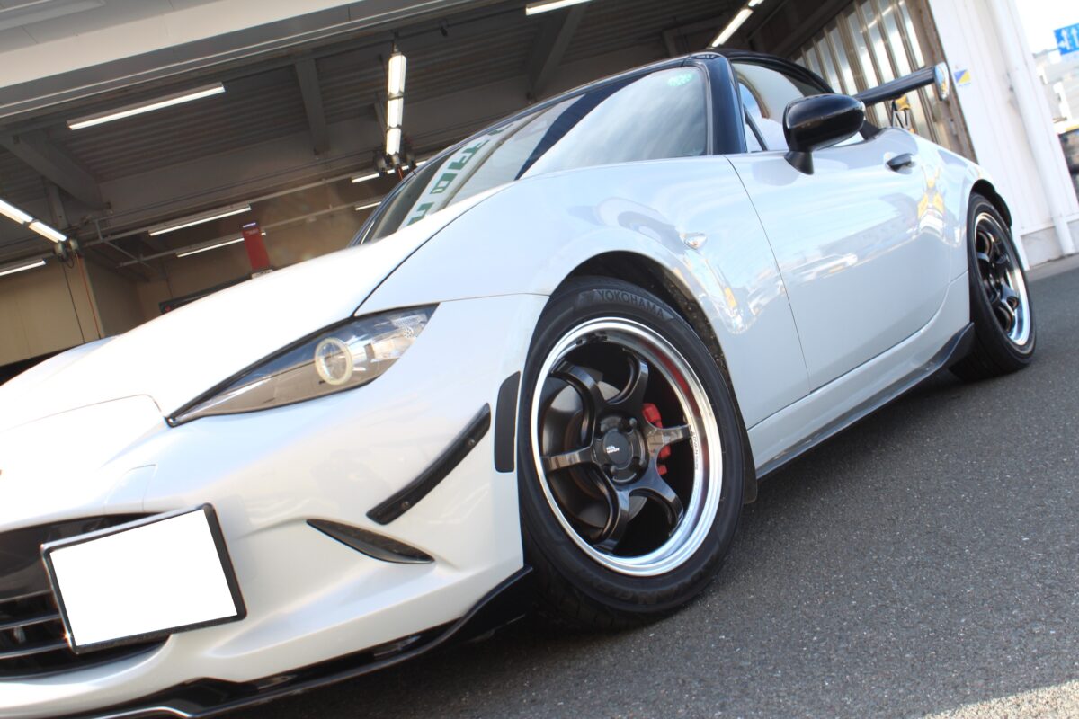 以前NDロードスターでタイヤ&ホイールセットをご購入いただいたお客様が仕様変更でご来店。