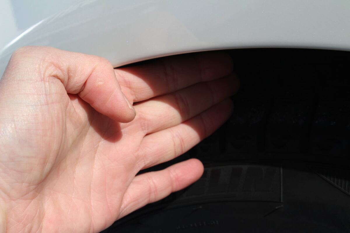 フェンダーとタイヤの隙間が指2本分ほど埋まり、