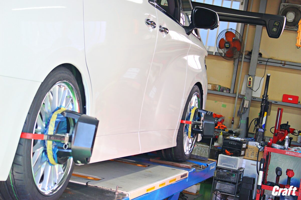 ■【アルファード】21インチのWORK グノーシスCFVをツライチで装着!! 皆さんこんにちは、クラフト中川店の加藤です。 本日のご紹介は40系アルファードのトータルコーディネート。 ローダウンと合わせてツライチを狙っていきます。 ■【WORK】GNOSIS CVF ホイールのサイズやカラーリングなどの自由度が高く、カスタムユーザー様からの支持が厚いWORK! 細身5本スポークデザインのグノーシス CVFを装着です。 今回はディスクをこだわりのセミオーダーカラー"ブラック"でオーダーいただきました。 更にこだわりを詰め込み、オーナー様のご要望である9.5Jにチャレンジします! このホイールを語るうえで欠かせないのがディスクのセンターパートに向けた落ち込み(コンケイブ)! ホイールのサイズによってコンケイブ度合いやリムの深さは異なりますが、今回装着したサイズですとリムの深さはなかなかのものに! WORKロゴ入りのナットを使用します。 アルファード/ヴェルファイアは40系になってからこれまでのM12からM14へと、ボルトの太さが変更されています。 それに合わせた規格のナットが必要となります。 ■【AXIS STYLING】PERFECT DAMPER 7G 通常では装着が難しい9.5Jを飲み込むための基礎となるローダウンをしていきます。 お選びいただいた車高調は「純正を超える乗り心地」を目標に開発されたパーフェクトダンパー7Gです。 純正時のフワフワとした乗り心地を抑え、ロールを抑えることでカーブや高速走行での安定感が得られます。 太いホイールを履かせたりツライチセッティングを狙うにはキャンバー角が重要になってきます。 取り付けた車高調にはキャンバーの調整機能がありませんので、追加でキャンバー角調整をさせるためのパーツを入れていきます。 ナックルとショックを固定するボルトと交換することで規定値内でキャンバー角を調整することができるようになります。 装着したホイールのサイズに合わせて細かな調整を行い、9.5Jをインストールする準備をしていきます。 こちらが純正状態でのフェンダークリアランス。 もともとの車高が高いミニバンですが、タイヤとフェンダーの隙間によって車両が浮いているように感じてしまいます。 そしてこちらがパーフェクトダンパー7Gでローダウンを行った後のフェンダークリアランス。 ダウン量は約40㎜でセッティングしています。 車高のセッティングが完了したら3Dアライメント調整で足回り各部の角度数値を整えます。 車高の変化に伴う各部の角度数値を放置してしまうとタイヤの偏摩耗やハンドルセンターのズレに繋がってしまいますので、 足回り部品の交換と3Dアライメント調整はセットでの施工がマストです。 それでは完成したアルファードをご覧ください。 【BEFORE】 【AFTER】 WHEEL:【ワーク】グノーシスCVF 21インチ COLOR:ブラック(セミオーダーカラー) TIRE:【ニットー】NT555 G2 SUSPENTION:【アクシススタイリング】パーフェクトダンパー7G 【BEFORE】 【AFTER】 車両の腰高感を払拭しながら、過度に下げすぎない適度なローダウンで実用性もしっかりと確保しております。 21インチの大径ホイールで迫力のある仕上がりになりました。 ホイールカラーも艶のあるブラックカラーのため、ボディカラーとも自然にマッチしています。 ミリ単位でインセットを設定できる2ピースホイールですので車両の状態に合わせてサイズを設定できるのがいいですね。 ホイールの出ヅラもしっかりとフェンダー内に収めながら迫力を感じられるフォルムで仕上がりました。 チューナーサイズとなる9.5Jですが、クラフトでは豊富なノウハウによってインストールできるようセッティングを行っています。 ※車両個体差やセッティングの関係上、装着できない場合もあります。 この度はクラフト中川店をご利用いただきありがとうございました! アルファード/ヴェルファイアのカスタムのご相談は実績豊富な当店にお任せください。 皆様のご来店をスタッフ一同お待ちしております(*^_^*) クラフト中川店でした。 管理番号:0092601251007 ~次回開催~