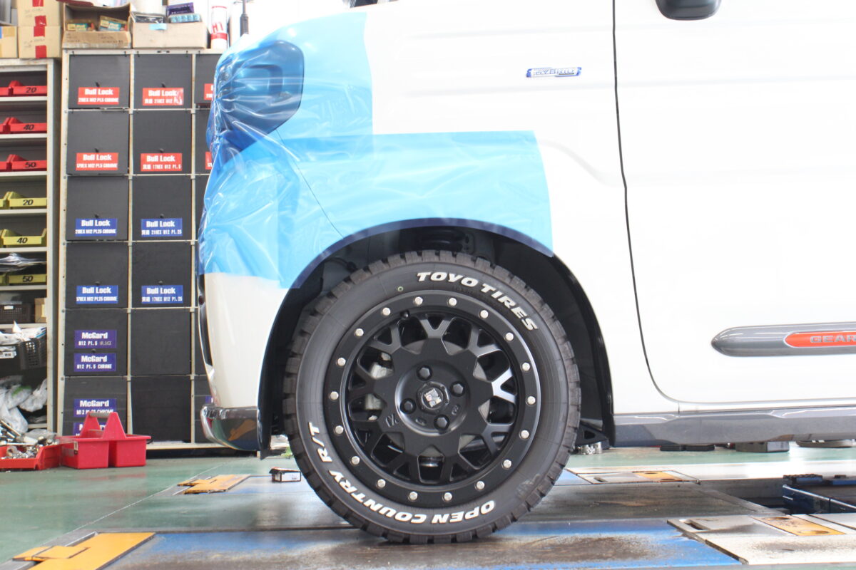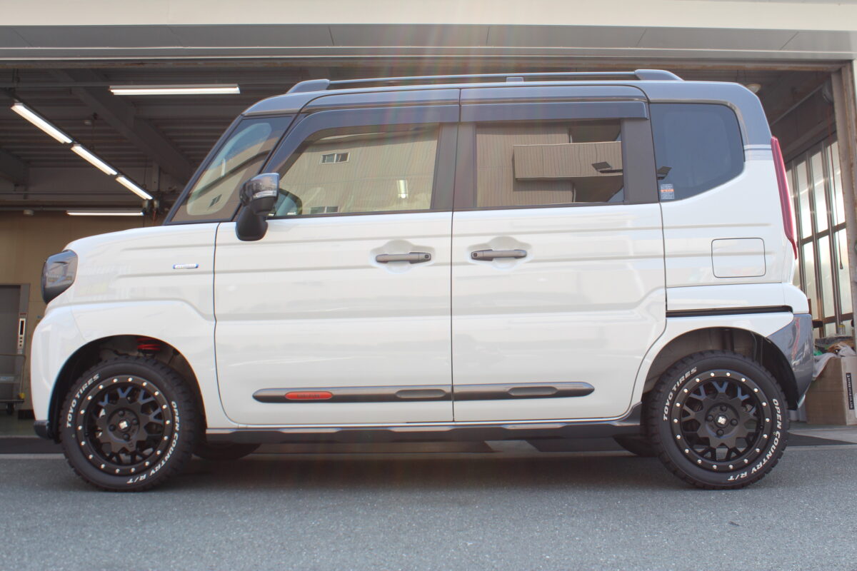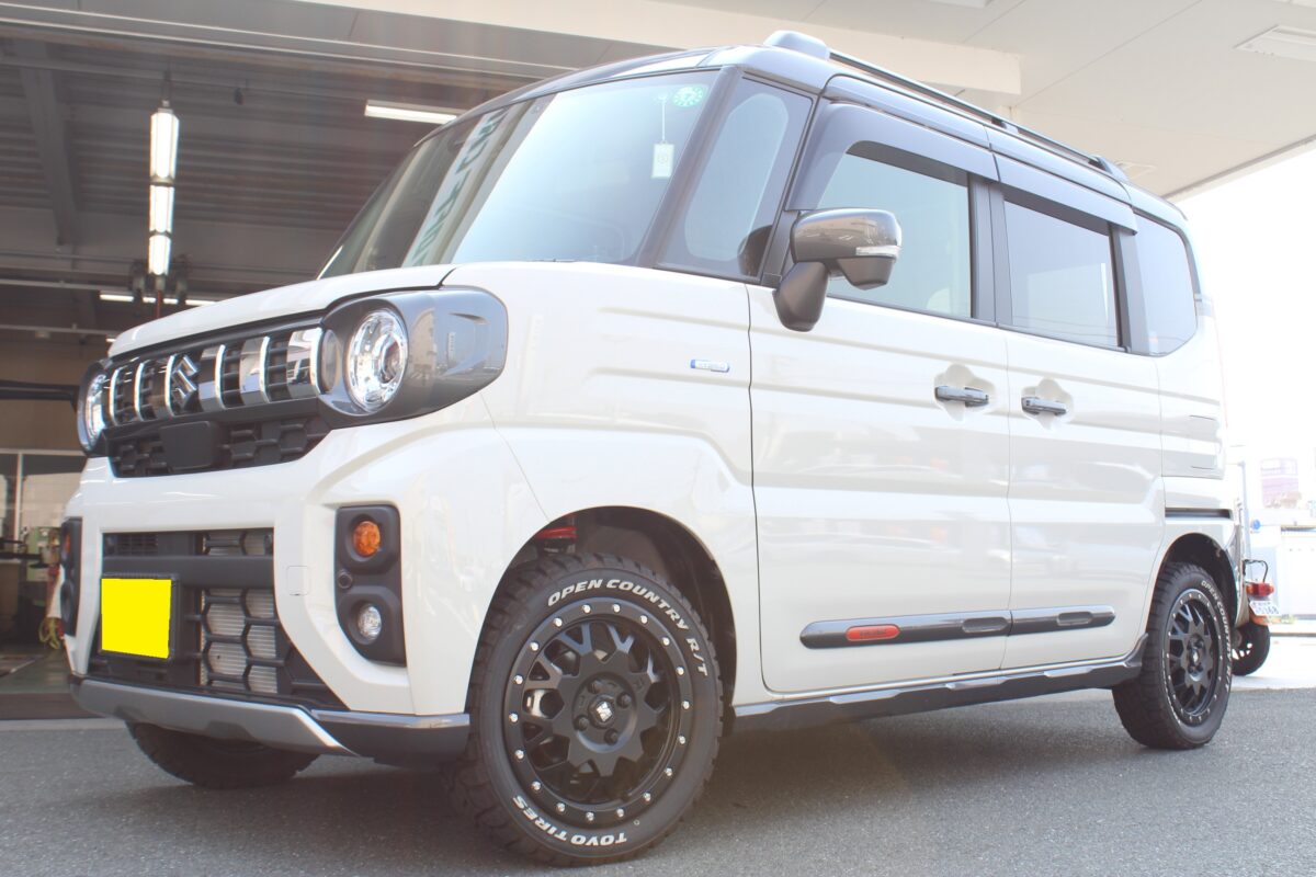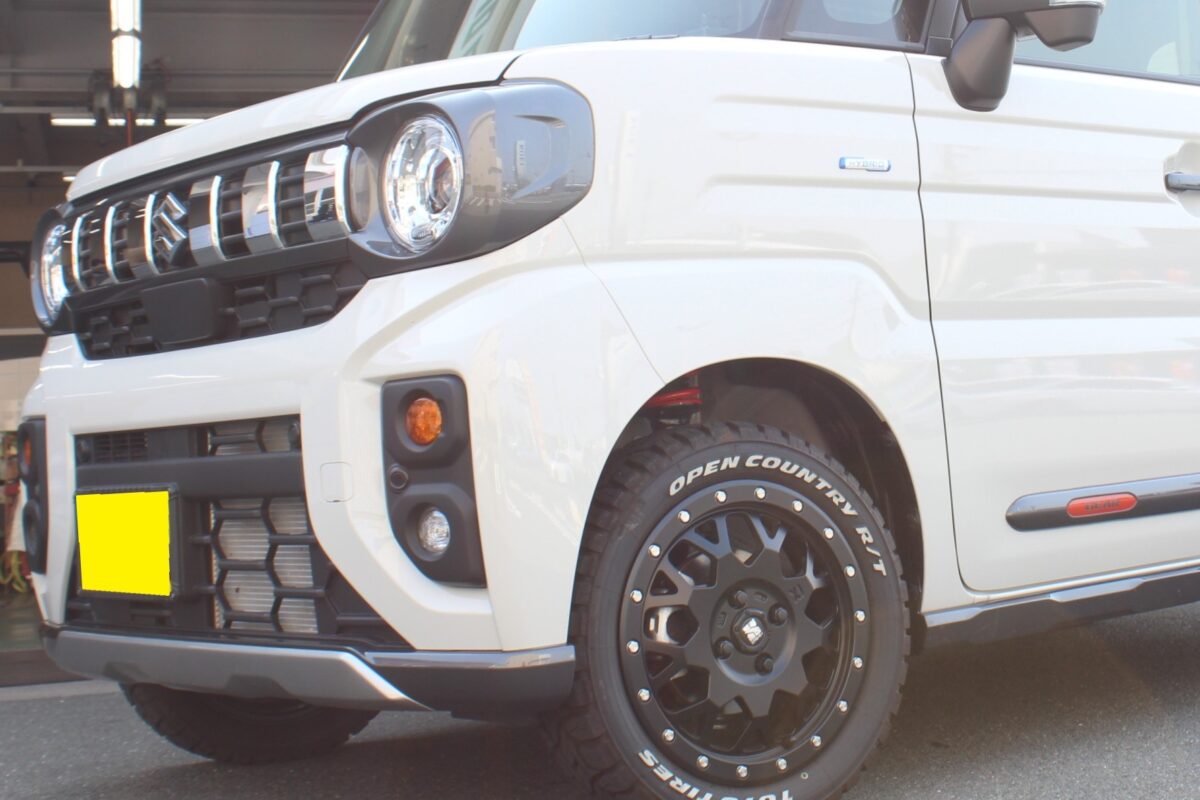 エクストリームJとオープンカントリーが装着済み、既にオフロード感のある【スペーシアギア】