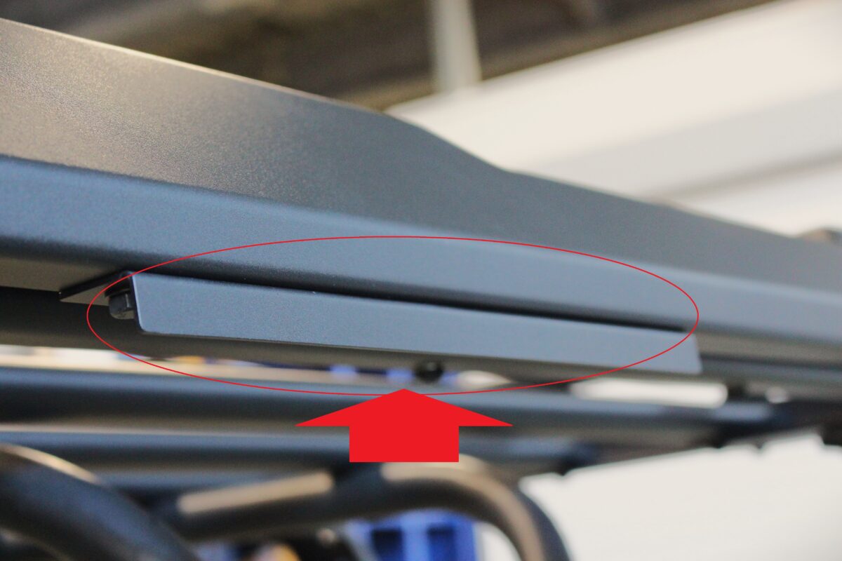 オプション設定となる風切り音低減プレートも同時に取付します。